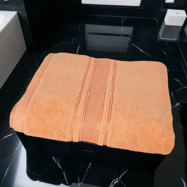 Prosop de Lux 70×130cm 100% Bumbac Pieptanat 650 g/mp-Peach este fabricat din bumbac pakistanez premium. Renumitul bumbac pakistanez pieptănat asigură o absorbție excelentă, durabilitate și o finețe deosebită, oferind un confort de neegalat în orice casă. Aceste prosoape sunt destinate atât utilizării hoteliere (industria Horeca), cât și celei casnice. Găsești mai jos caracteristicile și descrierea completă.