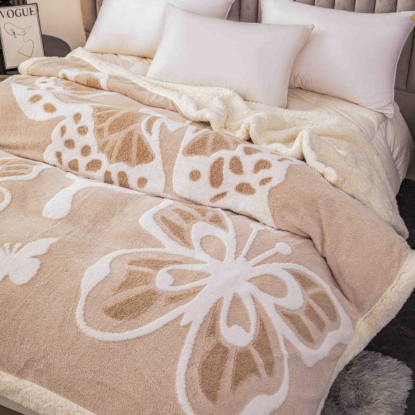Pătură Cocolino 3D cu Blăniță – Moale, Călduroasă și Elegantă, Imprimeu Fluture, 200×230 cm-Bej