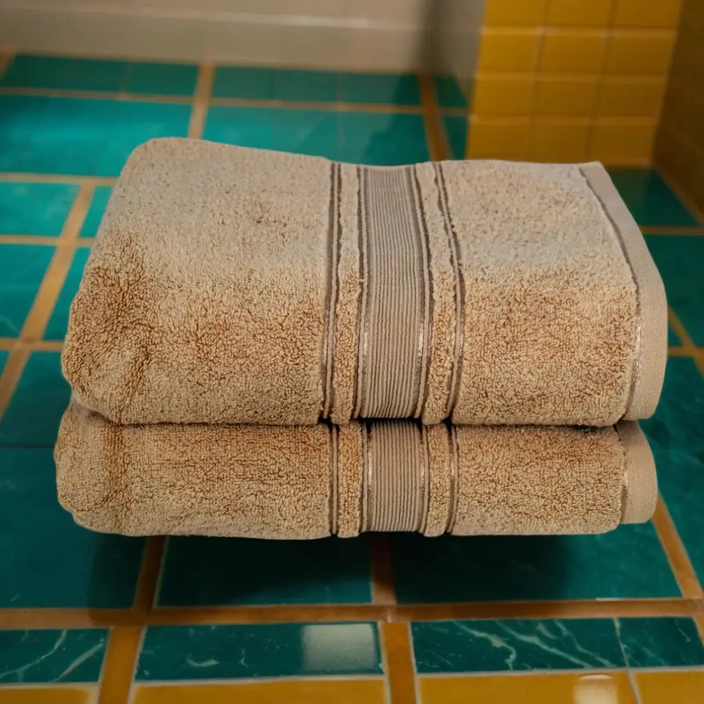 Set 2 Prosoape Pufoase de Lux 70×130cm, 100% Bumbac Pieptanat, Zero Twist, 650 g/mp-Cappuccino conține prosoape din bumbac pakistanez premium, prelucrate prin tehnologia specială Zero Twist. Materialul de înaltă calitate garantează o absorbție excepțională, durabilitate și o textură extrem de fină, oferind un confort superior. Ideale atât pentru uz casnic, cât și pentru industria Horeca, aceste prosoape sunt alegerea perfectă pentru cei care caută un produs de lux, rezistent la spălări frecvente și temperaturi ridicate.