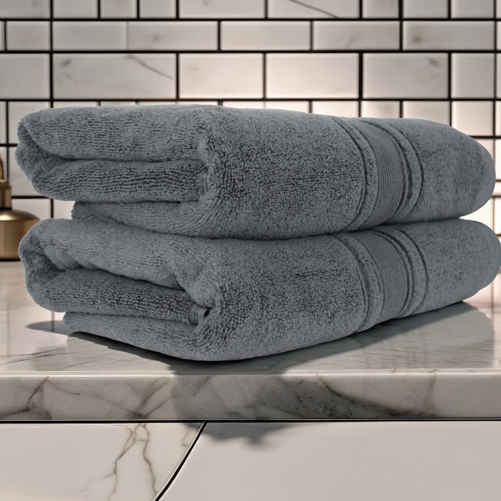 Set 2 Prosoape Pufoase de Lux 70×130cm, 100% Bumbac Pieptanat, Zero Twist, 650 g/mp-Gri
