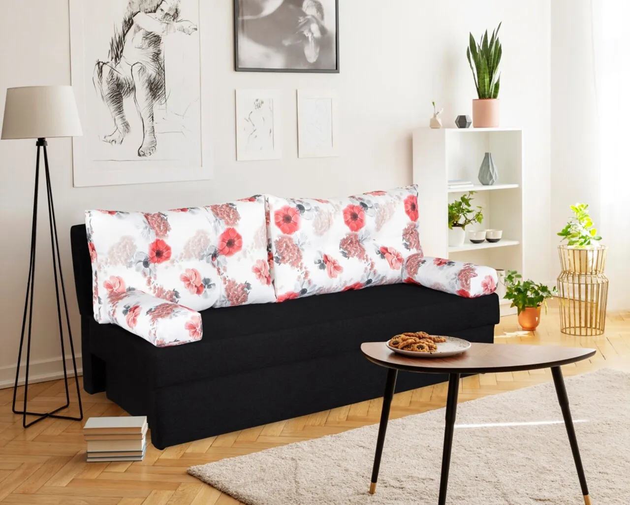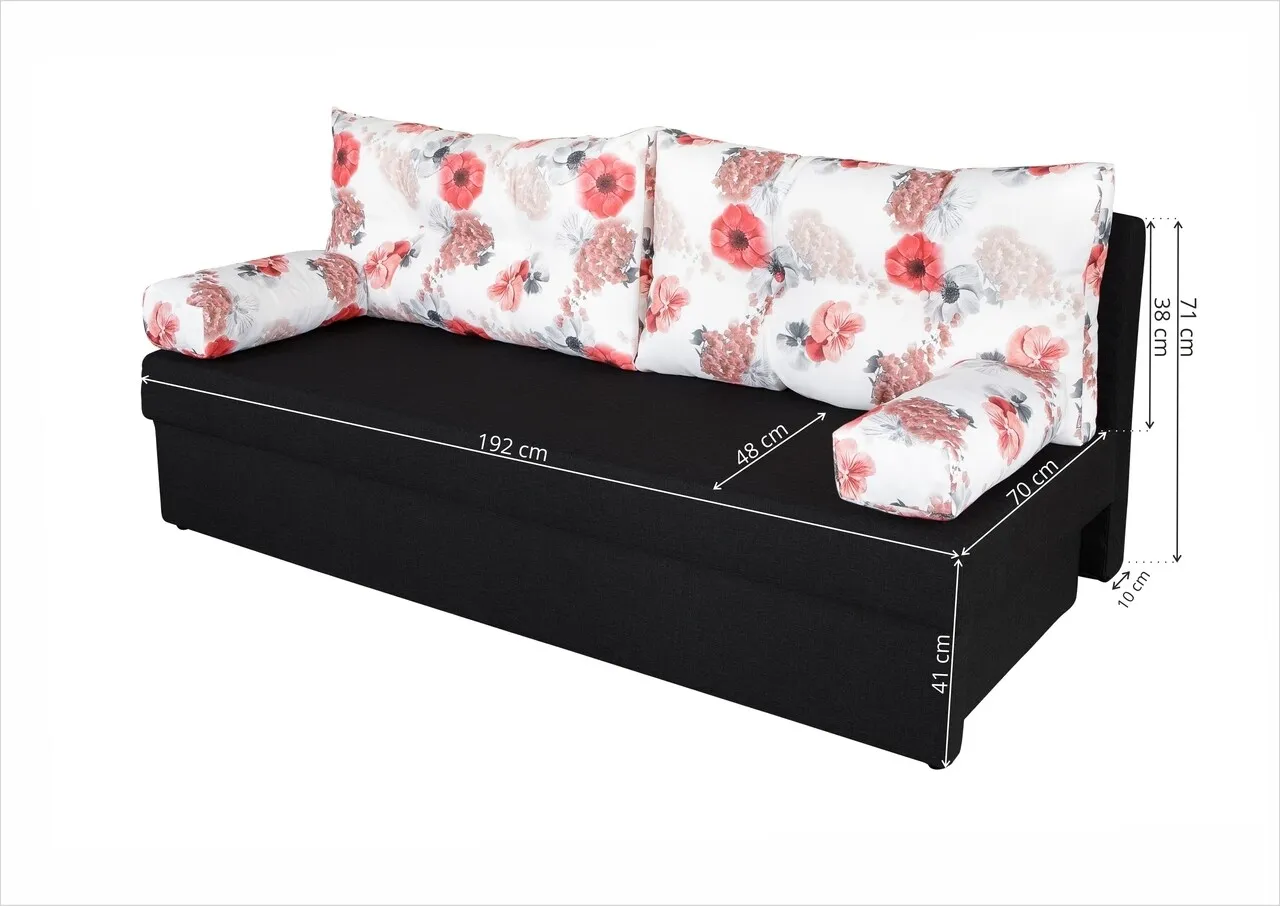 Canapea extensibila Alfi Anthracite 192x80x77 cm cu lada de depozitare, Roses Flower