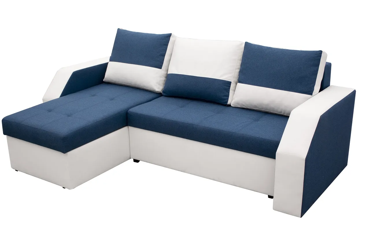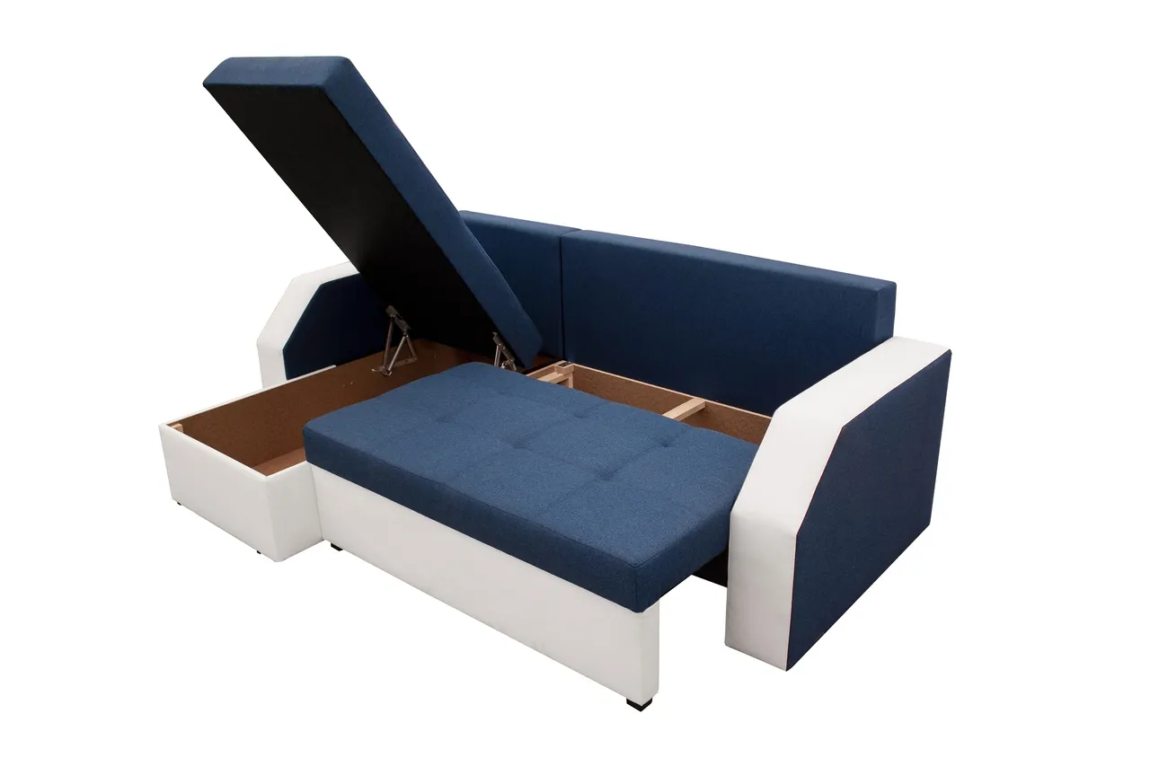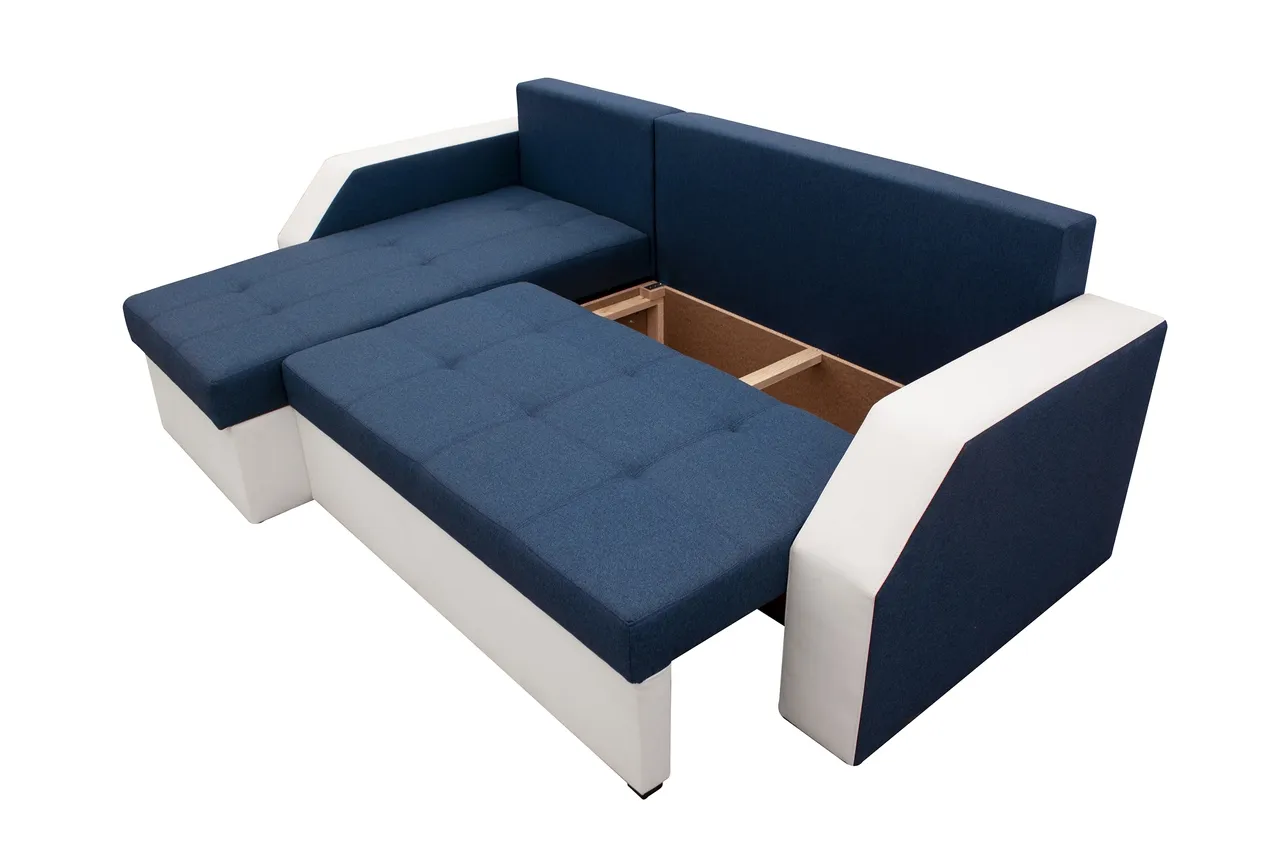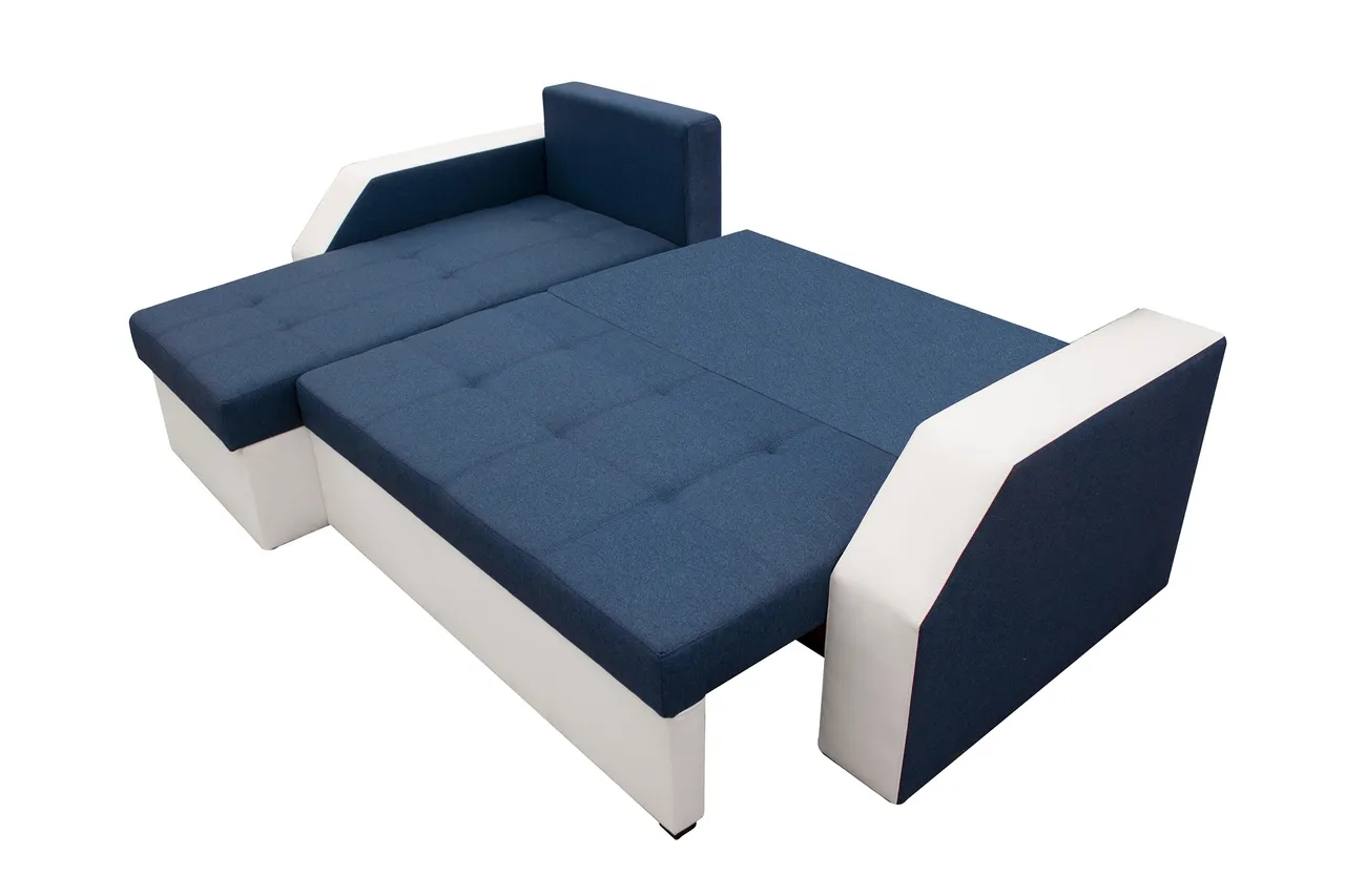 Coltar extensibil si reversibil Madrid 226x145x79cm 2 lazi depozitare Alb/Albastru petrol