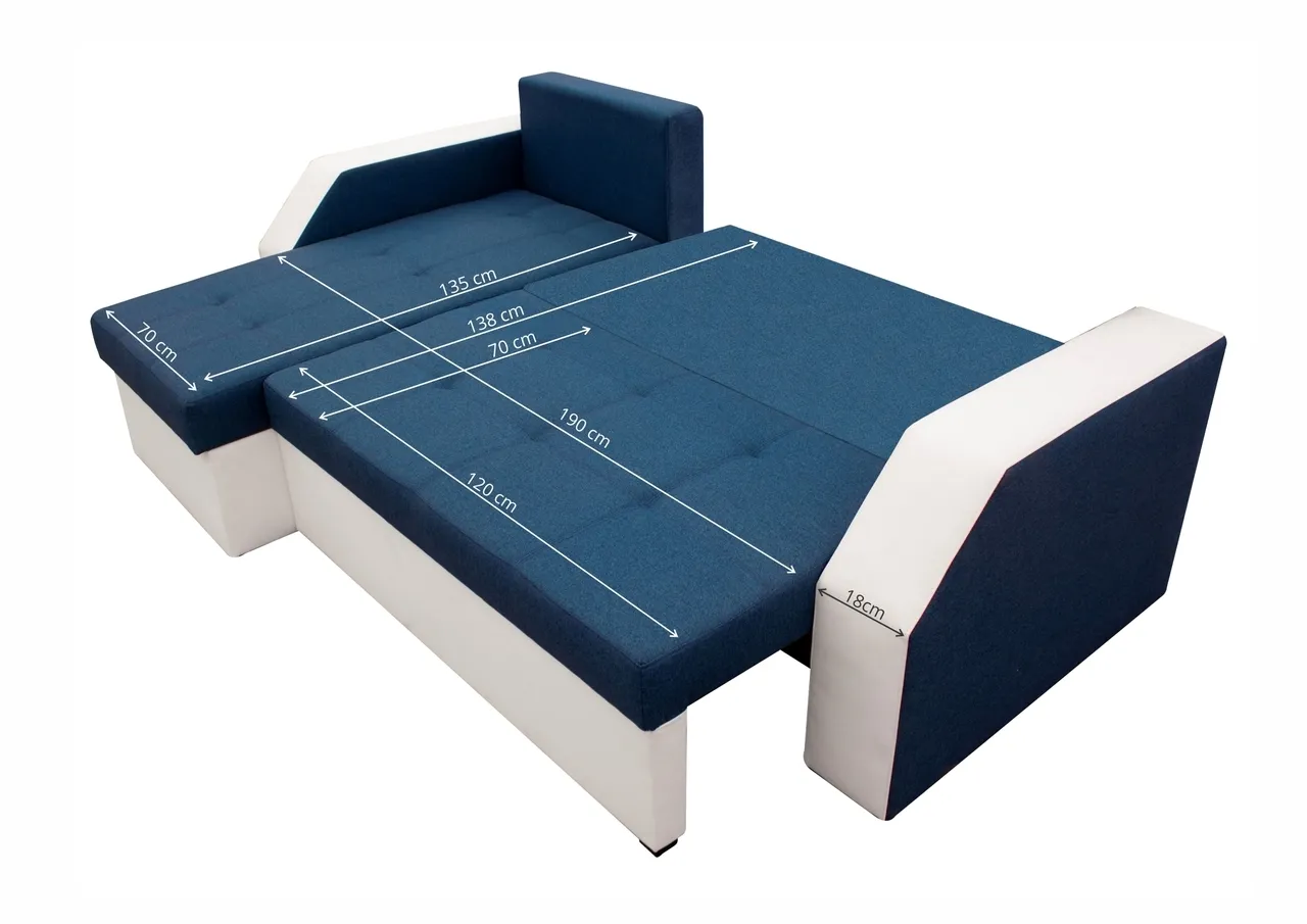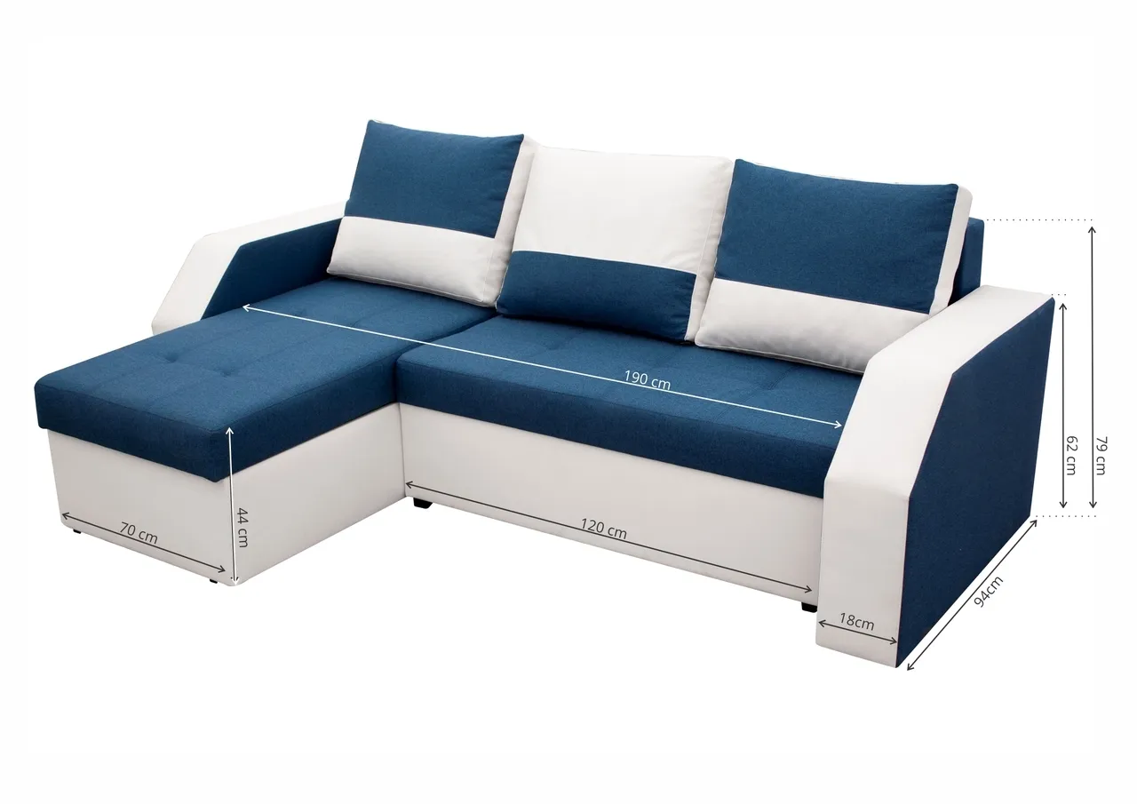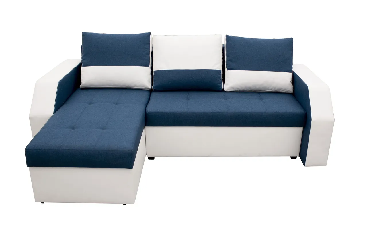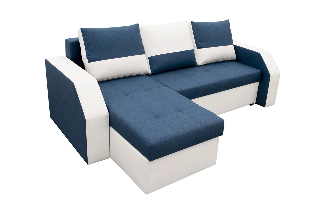 Coltar extensibil si reversibil Madrid 226x145x79cm 2 lazi depozitare Alb/Albastru petrol