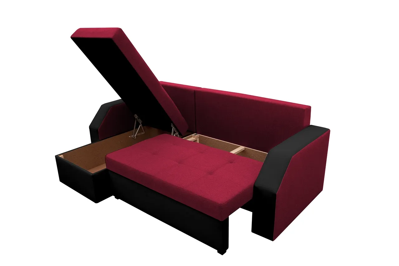 Coltar extensibil si reversibil Madrid 226x145x79cm 2 lazi depozitare Rosu/Negru