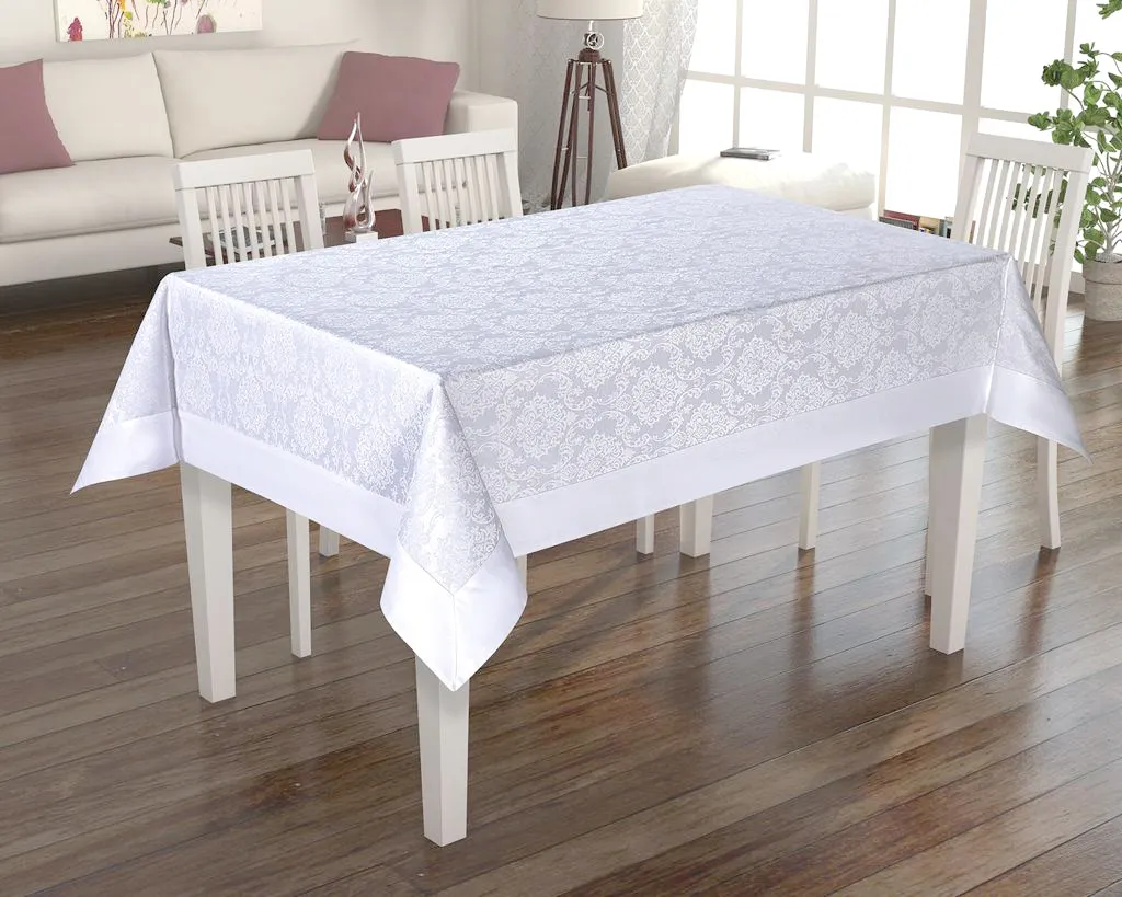 Față de masă 160×200 cm Jaquard Damasc cu imprimeu tesut Alb