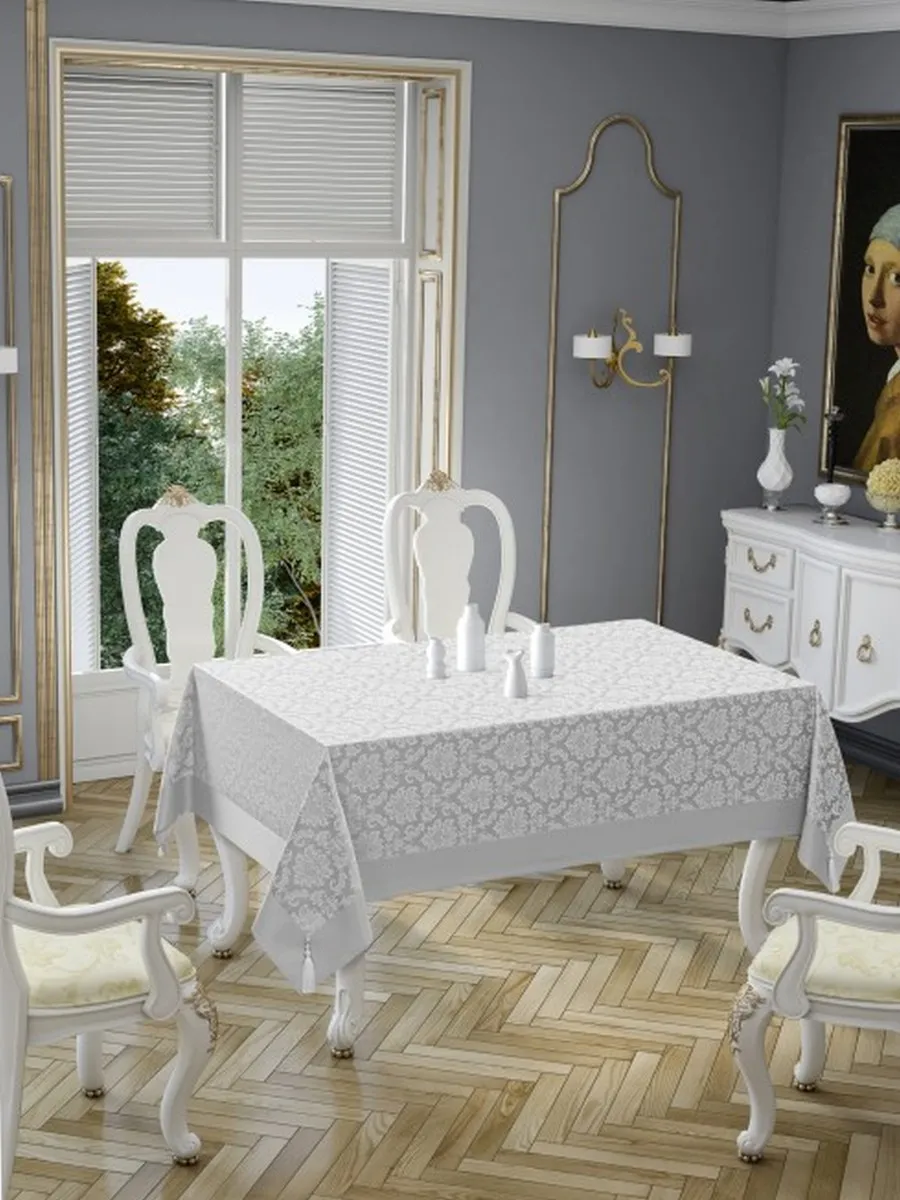 Față de masă 160×220 cm Jaquard Damasc cu imprimeu tesut Gri