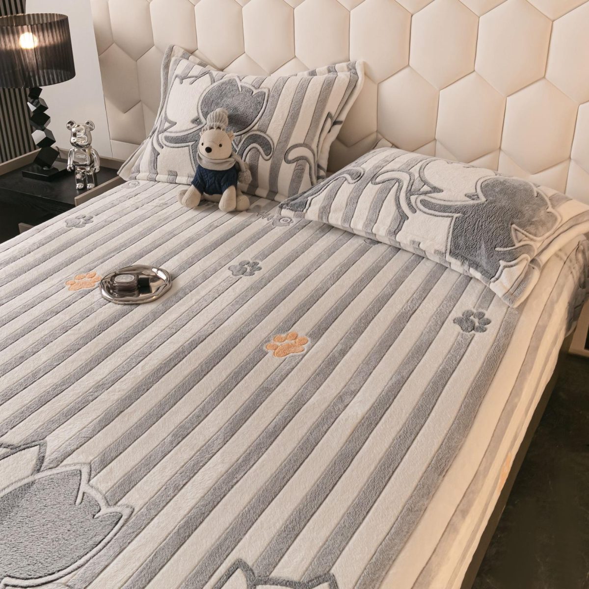 Husă de Pat Cocolino – 3 Piese, Cearșaf cu Elastic+2 fete de perna-Pisica