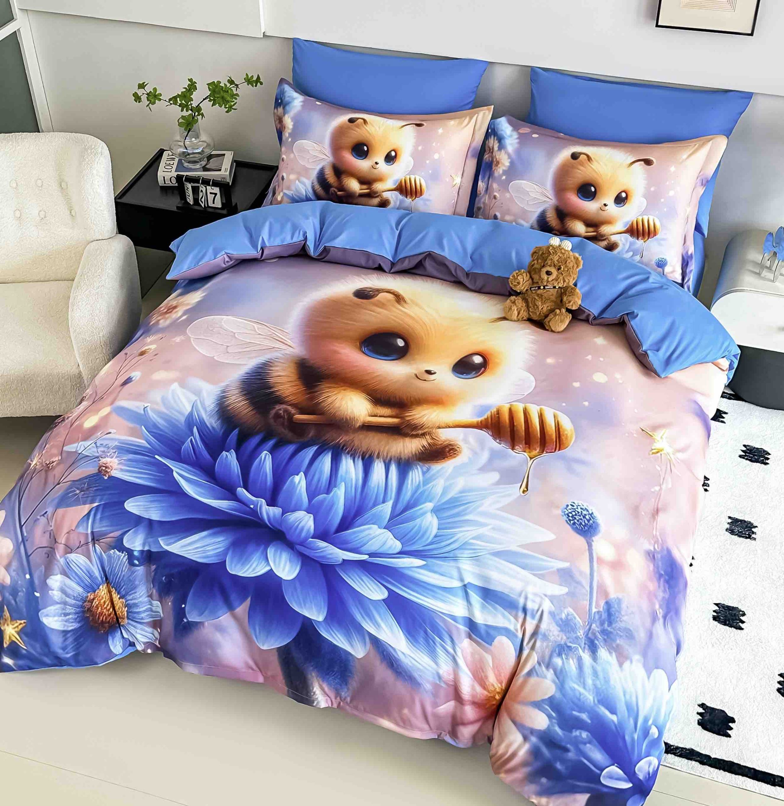 Lenjerie de Pat 6 Piese – Finet, Cearșaf cu Elastic, Imprimare Digitală 5D-Albina2