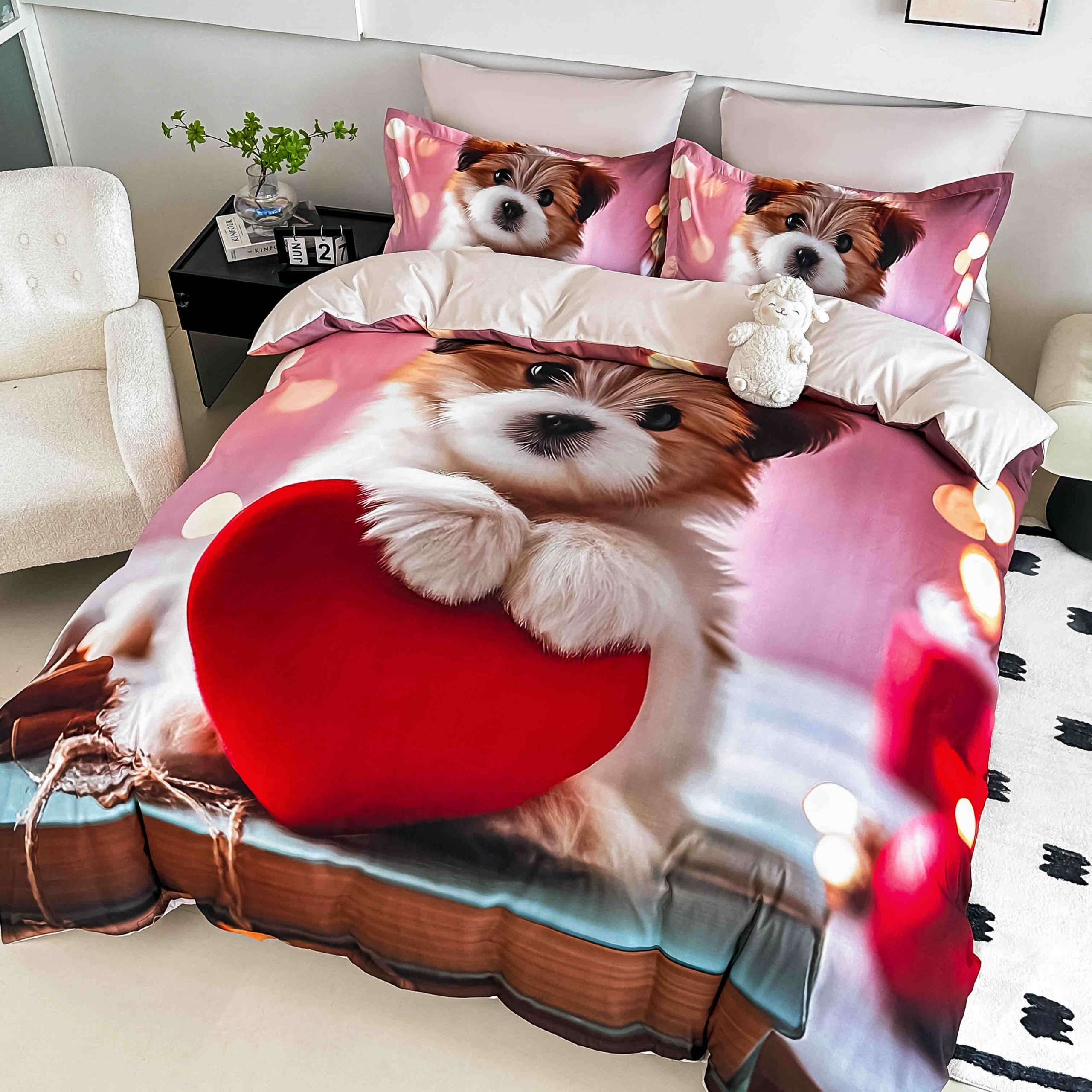 Lenjerie de Pat 6 Piese – Finet, Cearșaf cu Elastic, Imprimare Digitală 5D-Catel