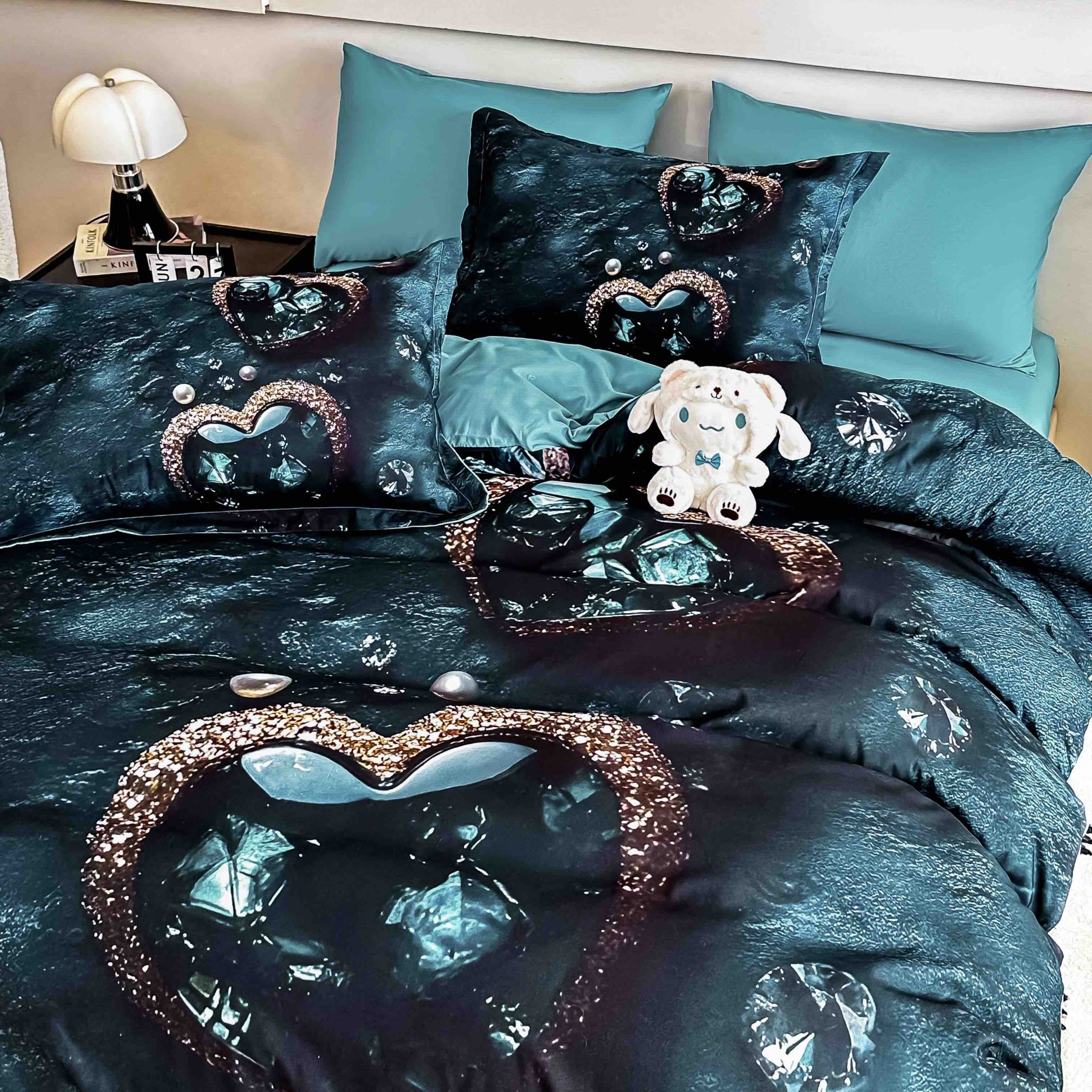 Lenjerie de Pat 6 Piese – Finet, Cearșaf cu Elastic, Imprimare Digitală 5D-Love