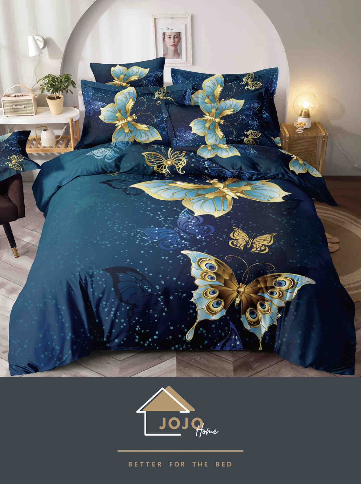 Lenjerie de Pat Finet – Imprimare Digitală 5D, 4 Piese, pentru 1 Persoană, Cearșaf cu Elastic-Fluturi6