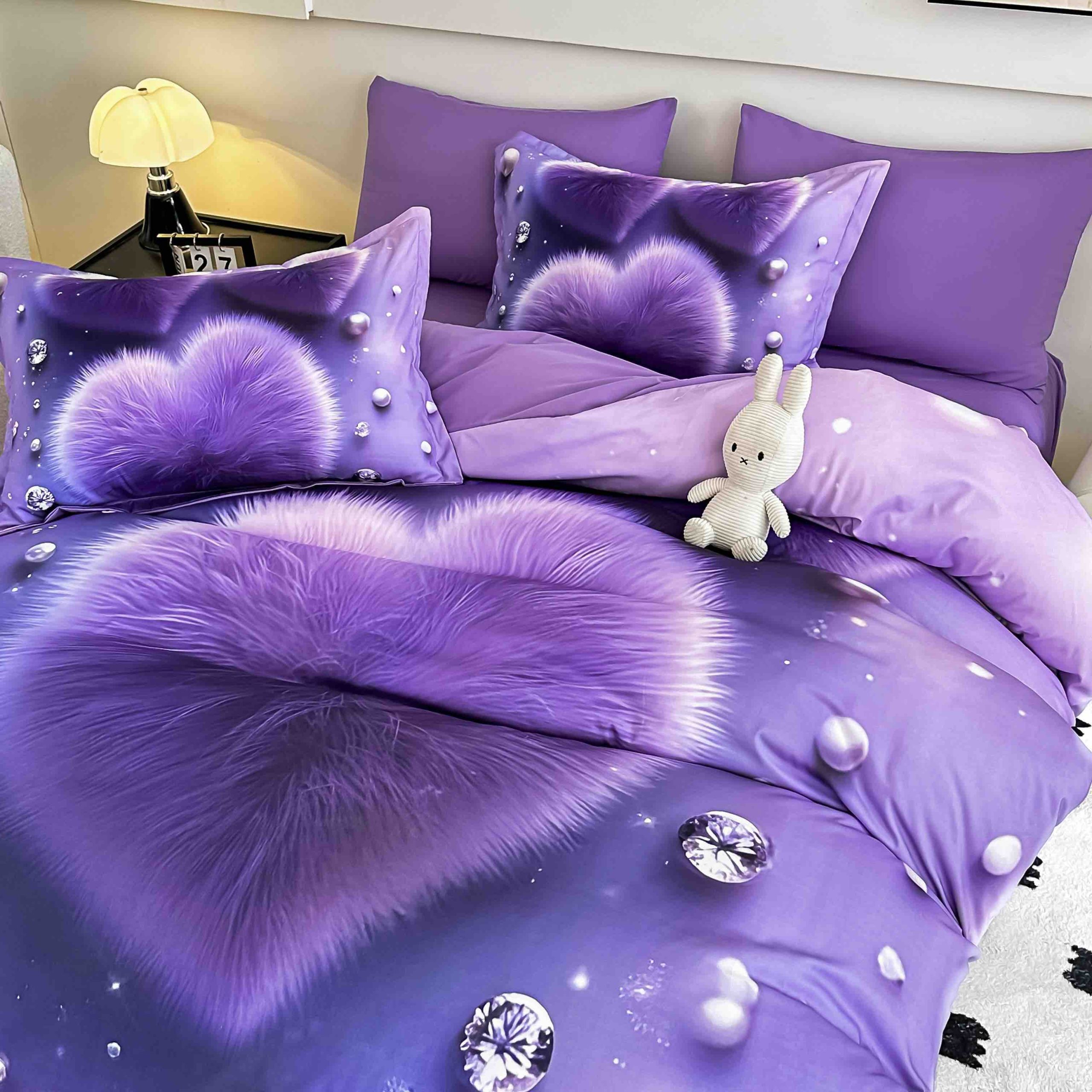 Lenjerie de Pat Finet – Imprimare Digitală 5D, 4 Piese, pentru 1 Persoană, Cearșaf cu Elastic-Love2