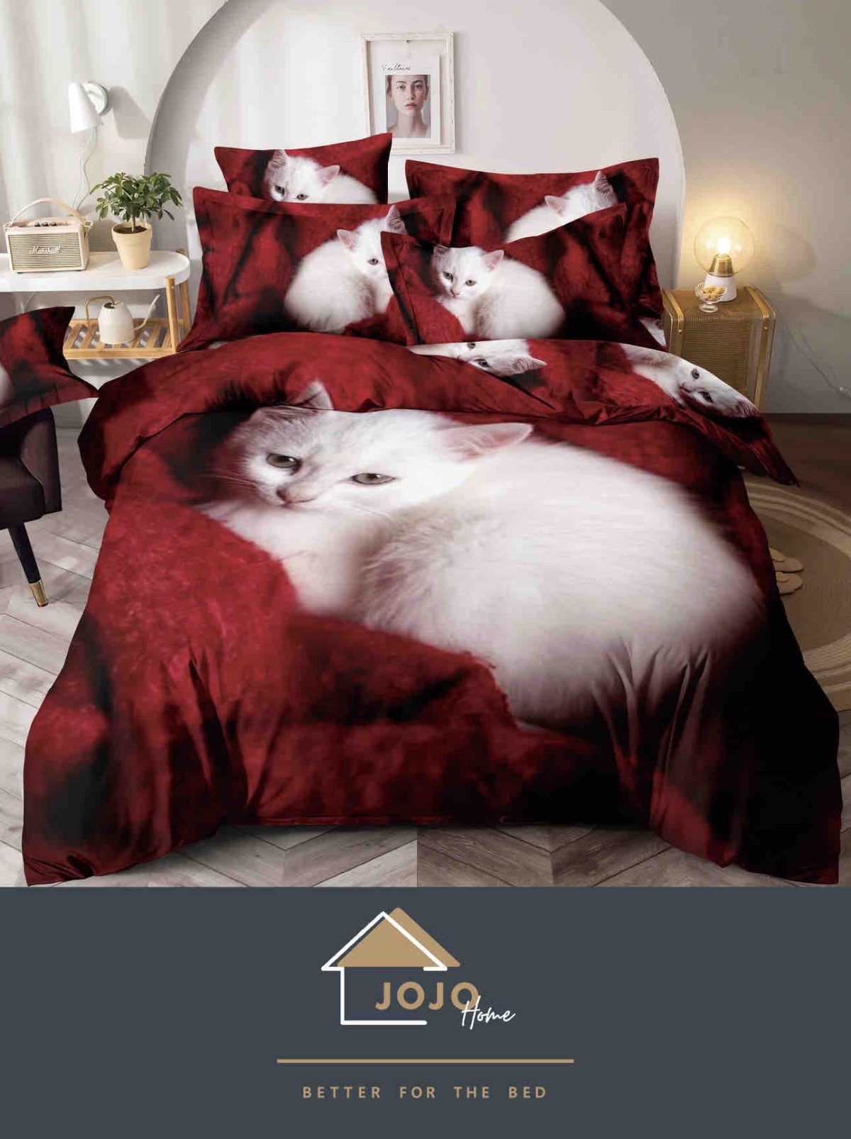 Lenjerie de Pat Finet – Imprimare Digitală 5D, 4 Piese, pentru 1 Persoană, Cearșaf cu Elastic-Pisica3