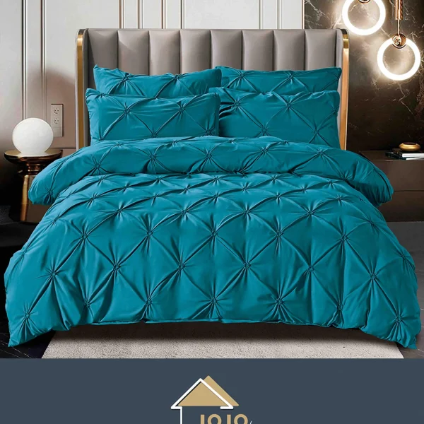 Lenjerie dublă cu pliuri cearceaf cu elastic finet 6 piese Albastru este o garnitură de pat deosebită ce impresioneaza prin eleganta, durabilitate si nu este deloc pretentioasa. Lenjeriile confectionate din finet sunt folosite atat in industria hoteliera, cat si in gospodarii individuale, oferind o rezistenta sporita in timp dar si confortul deosebit pentru un somn placut. Produsele din gama Deluxe cu pliuri nu doar că sunt moi și extrem de plăcute la atingere, dar ele sunt și hipoalergenice.