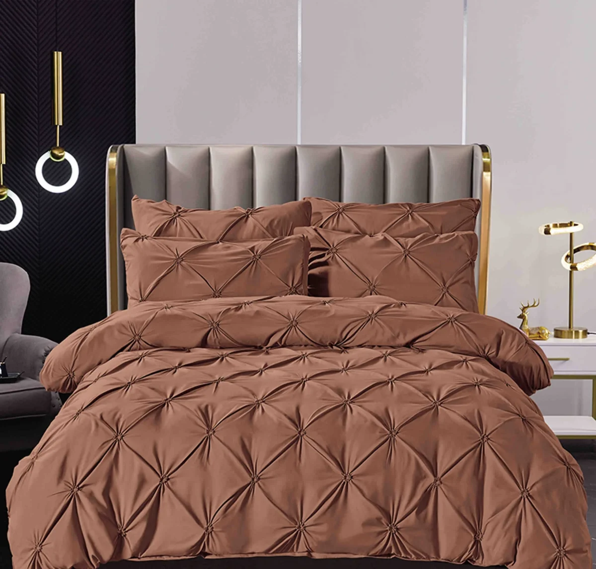 Caracteristici Lenjerie dublă cu pliuri finet Deluxe 6 piese Maro :