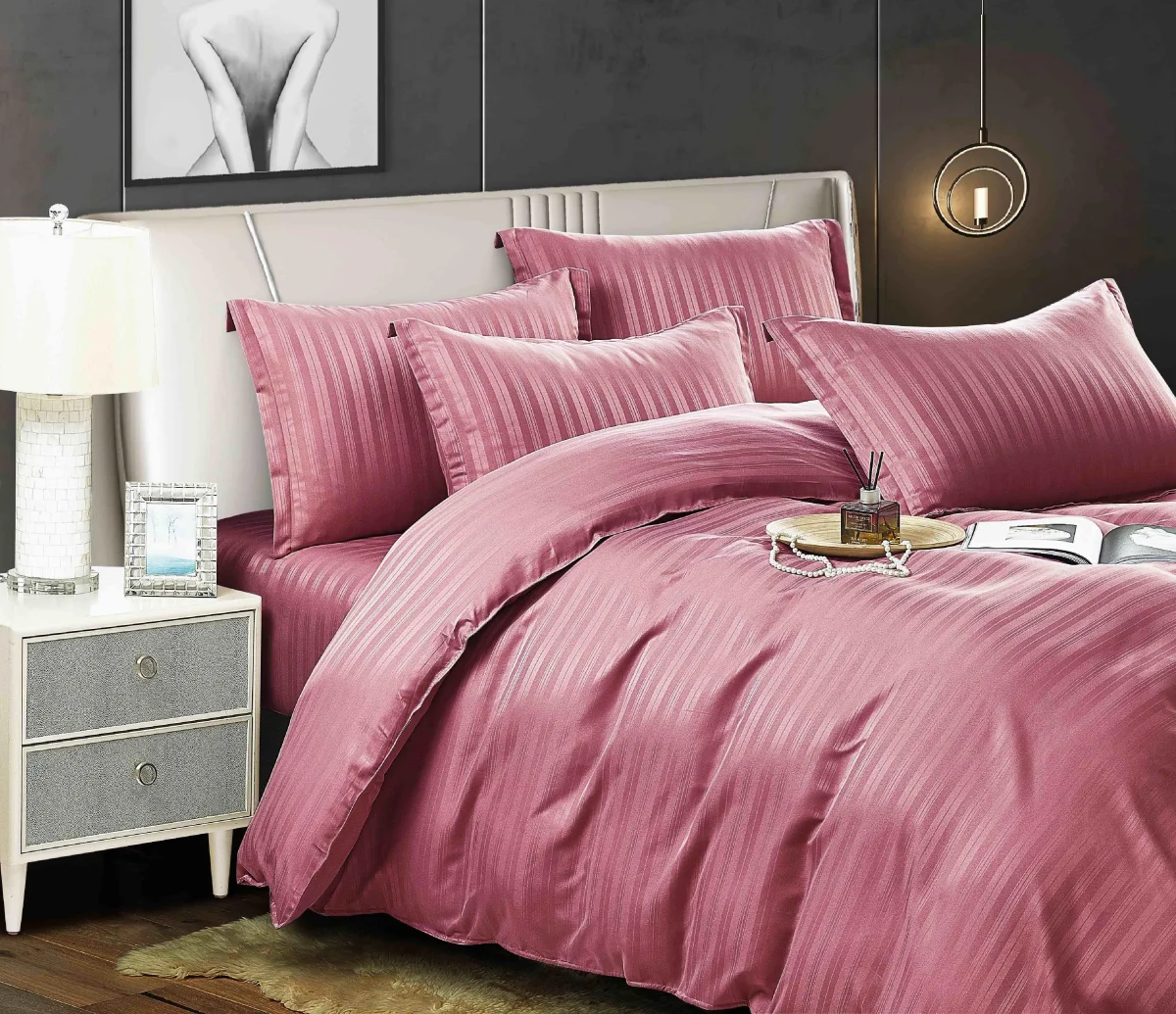Intretinere Lenjerie king size Damasc Finet 6 piese Roz M1