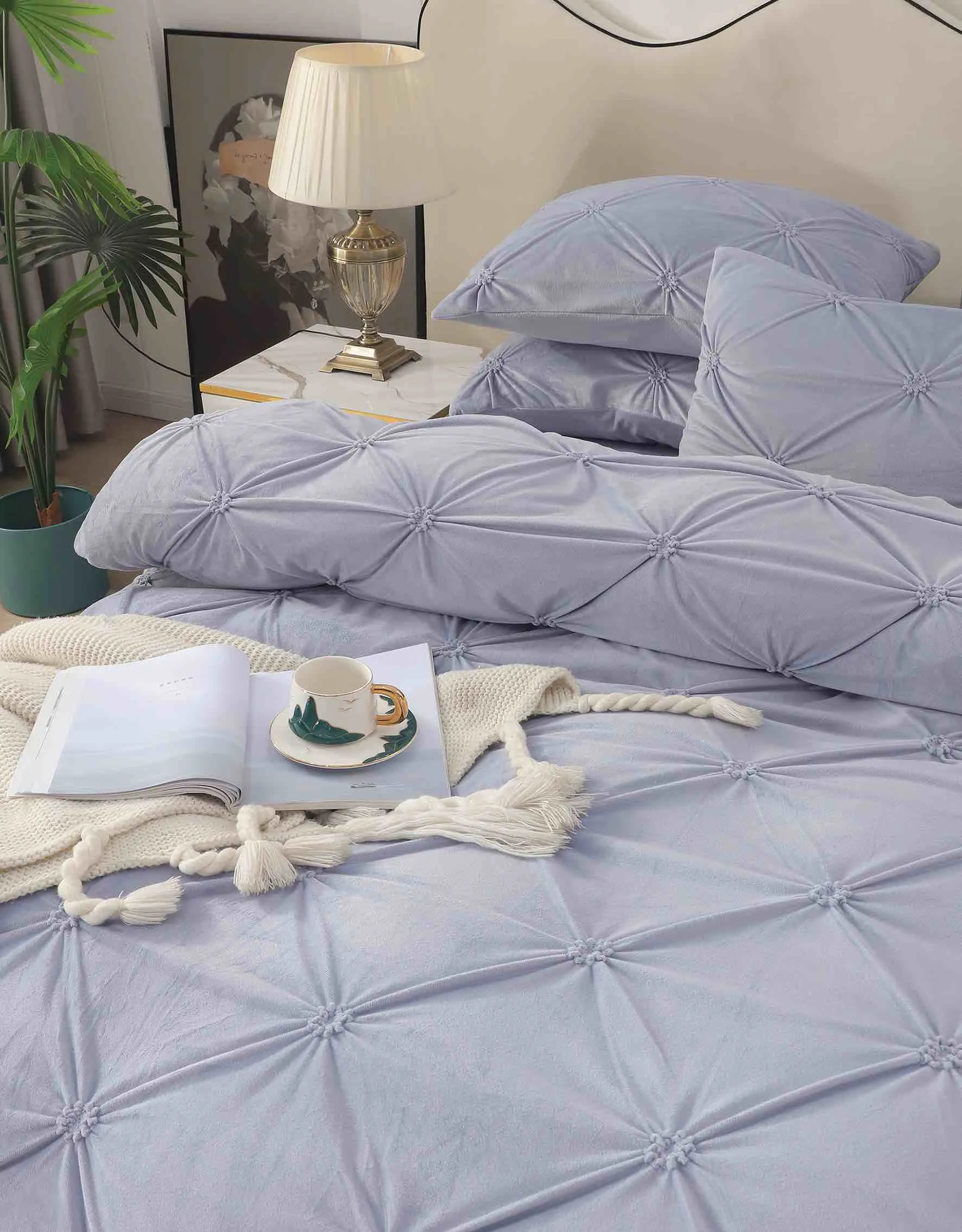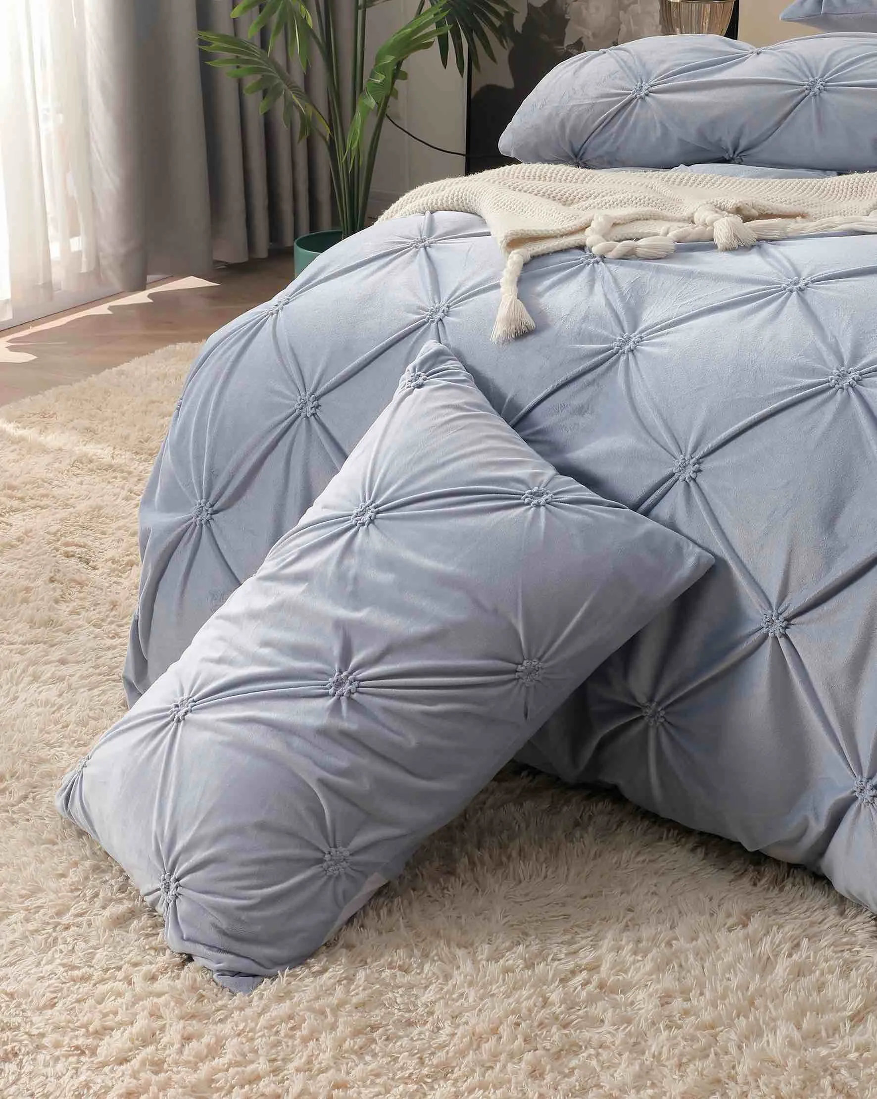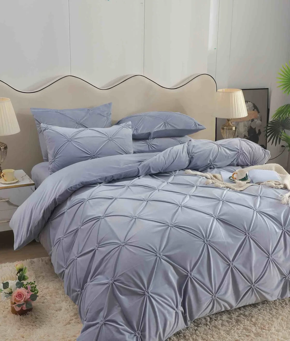 Caracteristici Lenjerie pat dublu din catifea cu pliuri LCP-Gri