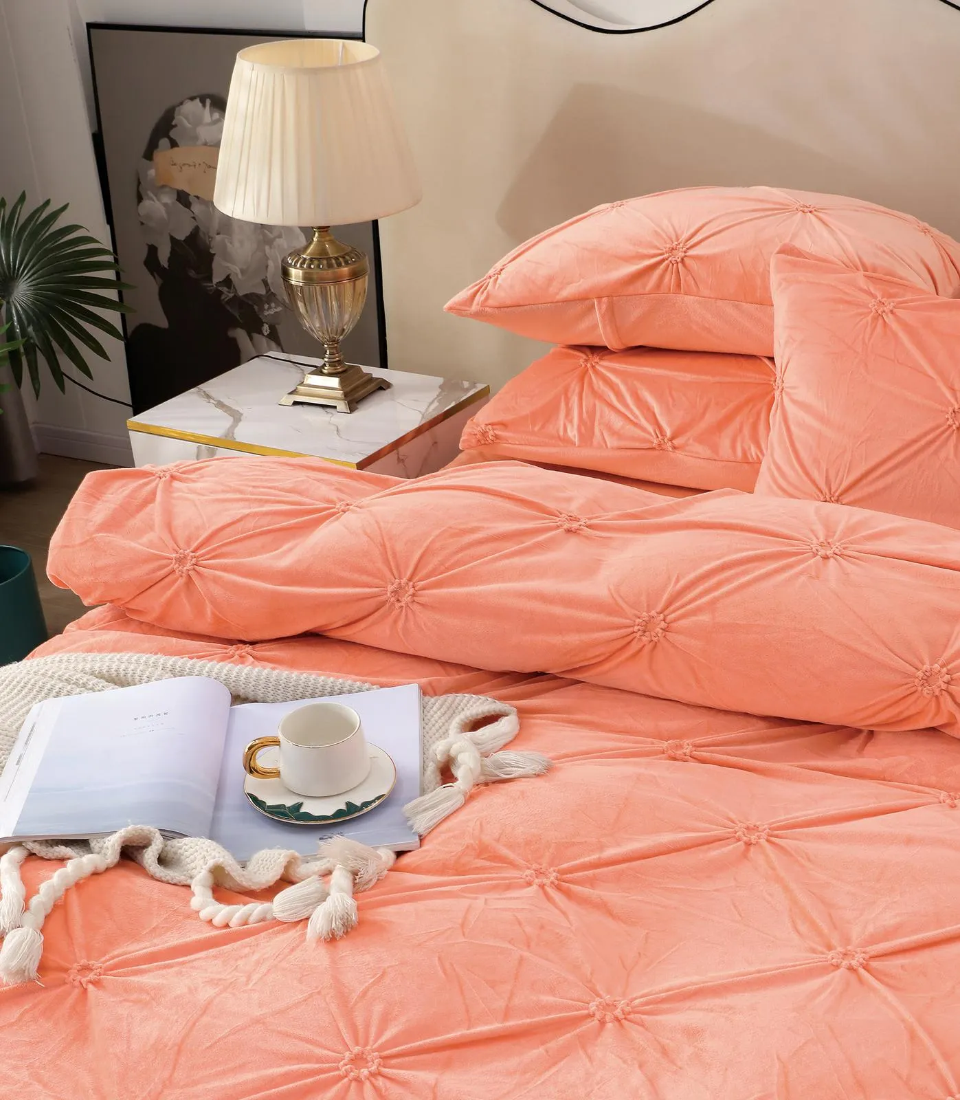 Caracteristici Lenjerie pat dublu din catifea cu pliuri LCP-Orange