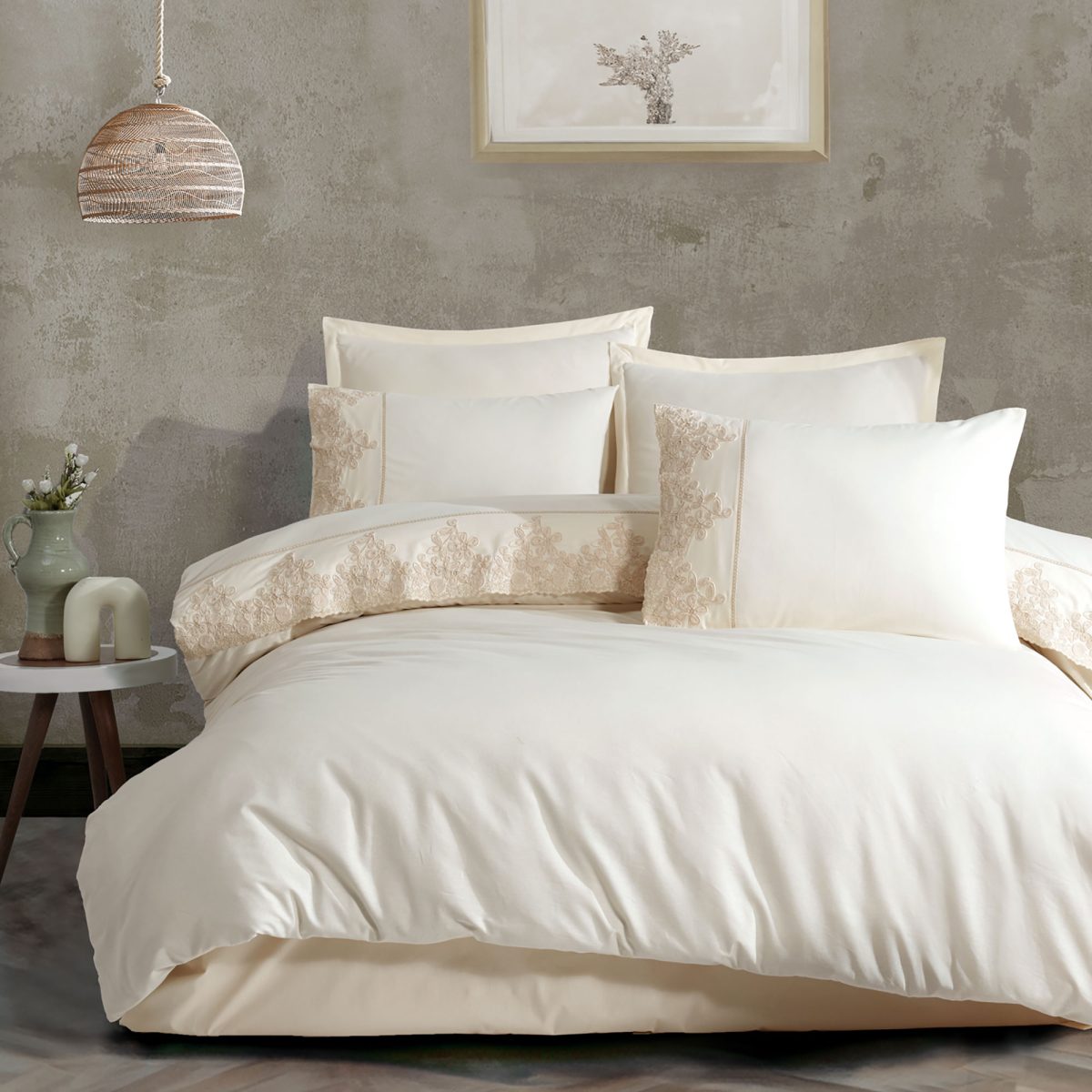 Lenjeria de pat Pucioasa Ranforce Butique, realizată din bumbac 100%, este alegerea ideală pentru cei care doresc să aducă un plus de eleganță și confort dormitorului lor. Țesătura Ranforce este apreciată pentru finețea, rezistența și respirabilitatea sa, oferind un somn liniștit și plăcut în fiecare noapte.