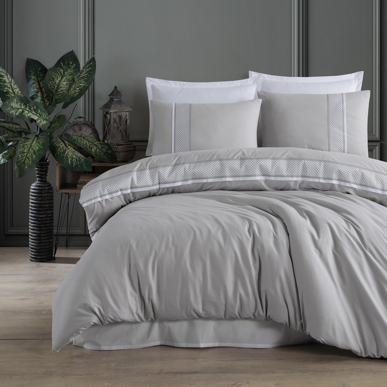 Lenjerie Pucioasa gri, din bumbac 100% Ranforce, respirabilă și moale. Setul include un cearșaf pat 260×240 cm, cearșaf pilotă 200×220 cm și 2 fețe de pernă 50×70 cm. Densitate 140 g/m². Ambalaj cutie cadou.