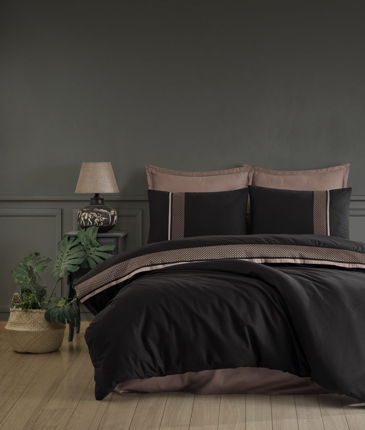 Lenjeria de pat Ranforce este disponibilă într-o gamă variată de culori, iar culoarea neagră este ideală pentru cei care preferă un design simplu și elegant. Negrul este o culoare versatilă, care se poate combina ușor cu alte nuanțe și care poate adăuga un aer de rafinament oricărei camere. Această lenjerie de pat nu doar că este practică și funcțională, dar și estetică, creând un ambient plăcut și calmant.