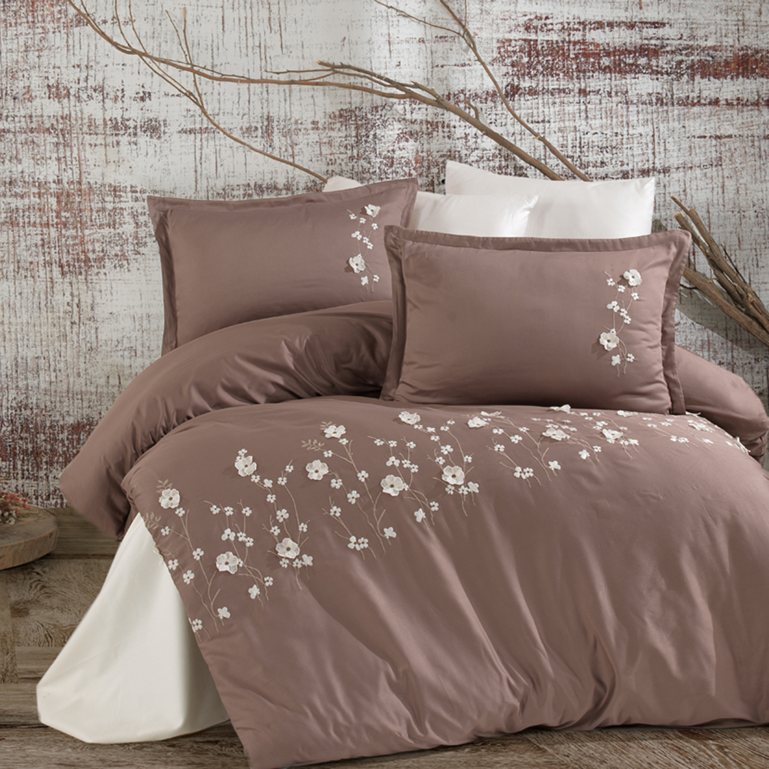 Cu un contrast elegant între maro cald și broderii fine albe, această lenjerie de pat din satin brodat atrage atenția prin sobrietate, dar și prin atenția acordată detaliului. Este o piesă care aduce echilibru între textură, culoare și finisaje, fiind destinată celor care apreciază discreția rafinată și materialele atent selecționate. Realizată din bumbac 100%, cu o țesătură tip satin, lenjeria oferă o senzație delicată la atingere și o rezistență crescută în timp.