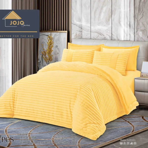Lasă-te răsfățat de atingerea catifelată a bumbacului dublu satinat, material premium, cu o durată de viață de până la 5 ani.