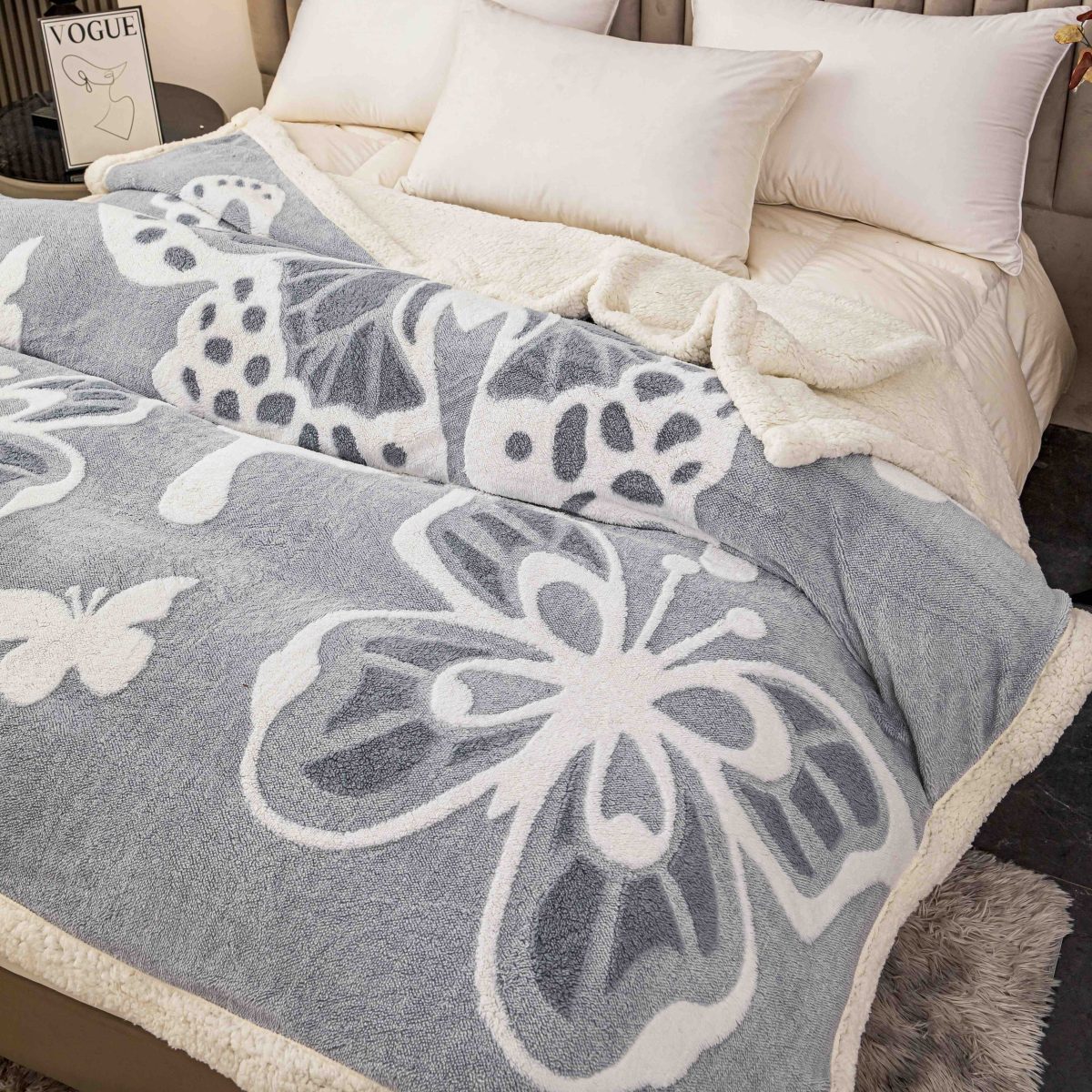 Pătură Cocolino 3D cu Blăniță – Moale, Călduroasă și Elegantă, Imprimeu Fluture, 200×230 cm-Gri
