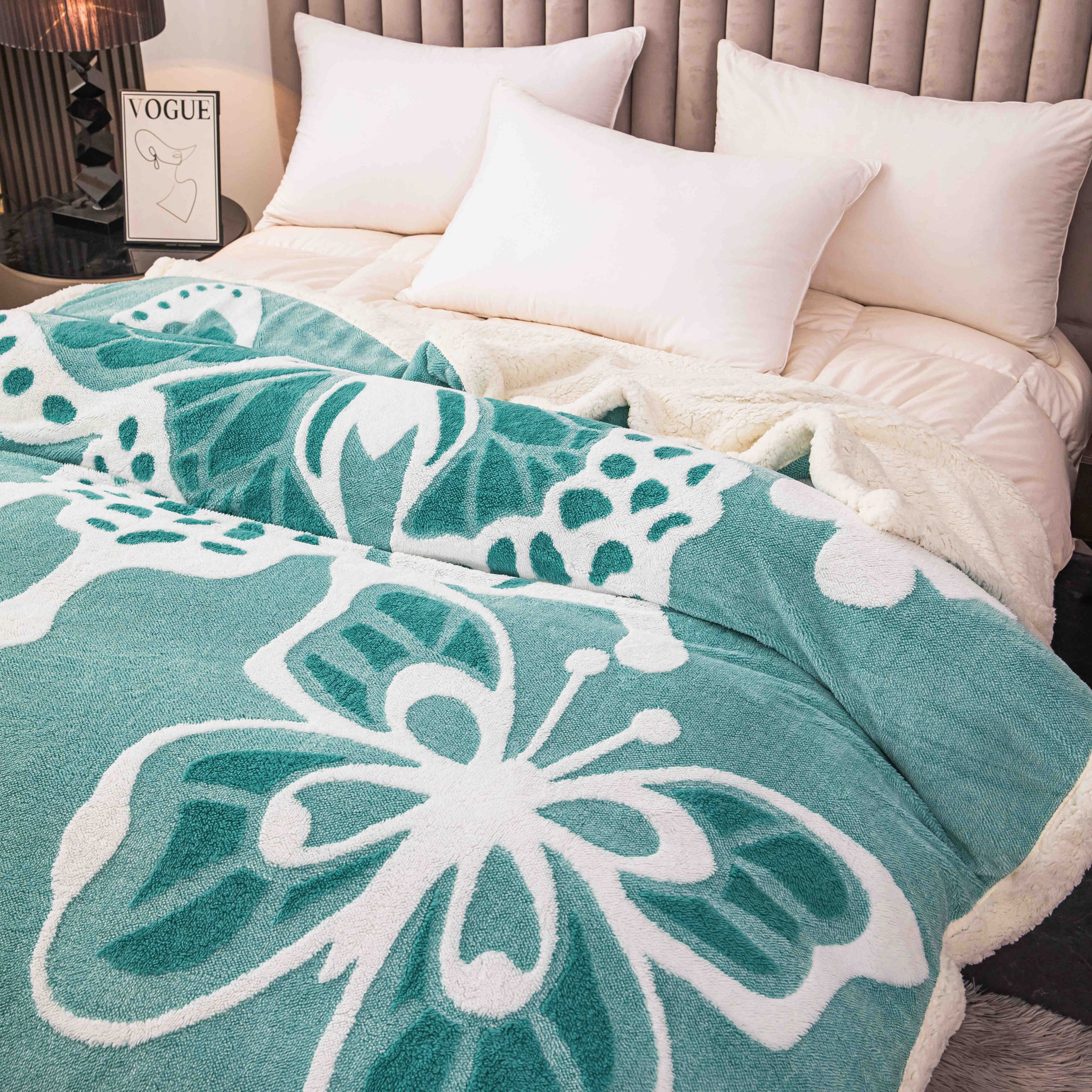 Pătură Cocolino 3D cu Blăniță – Moale, Călduroasă și Elegantă, Imprimeu Fluture, 200×230 cm-Turcoaz