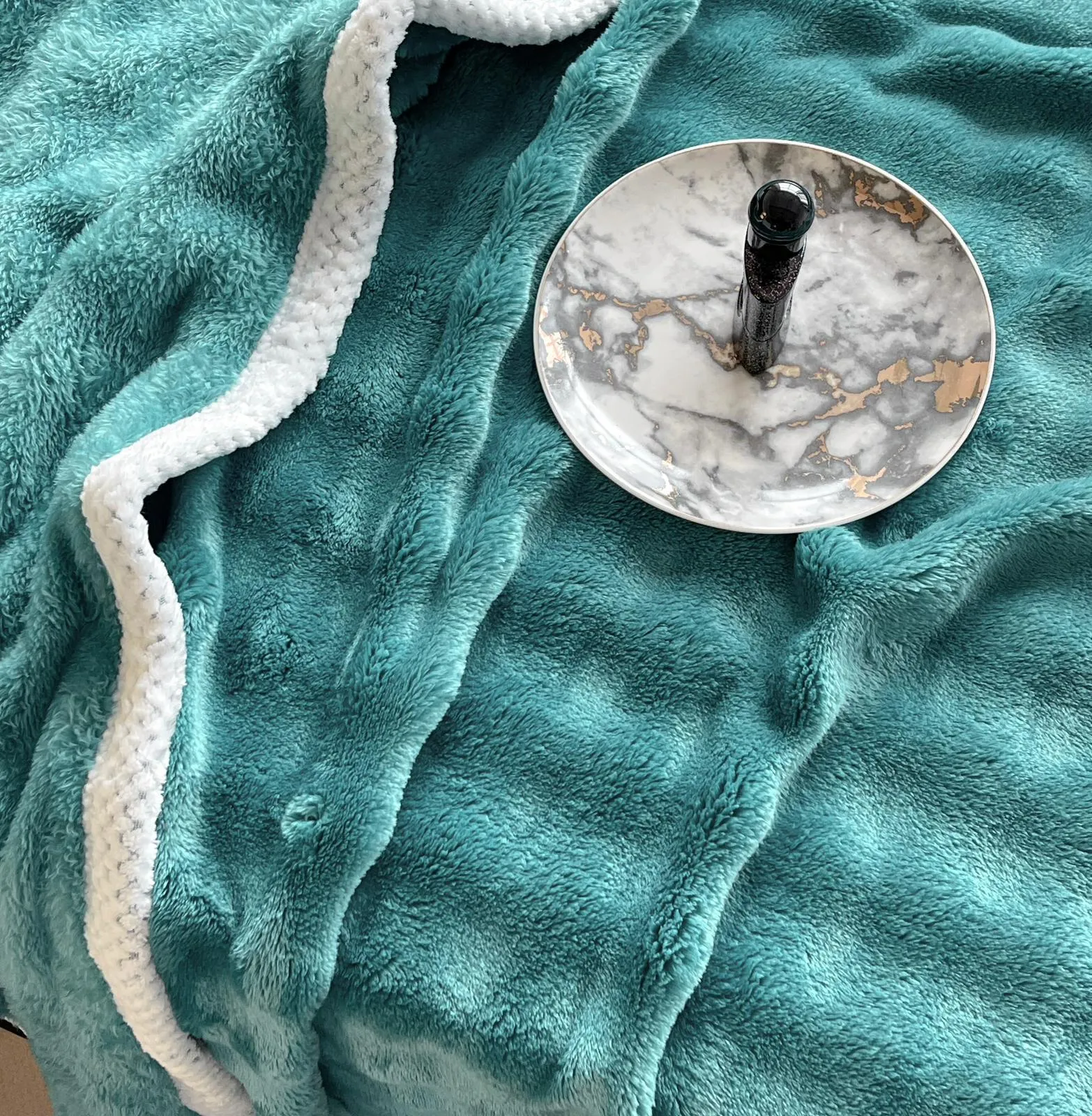 Patura Cocolino cu blanita 200×230 cm Turcoaz este foarte calduroasa, din material plin. Aceasta patura reprezinta cadoul ideal pentru cei dragi dar si o necesitate in dormitorul tau.