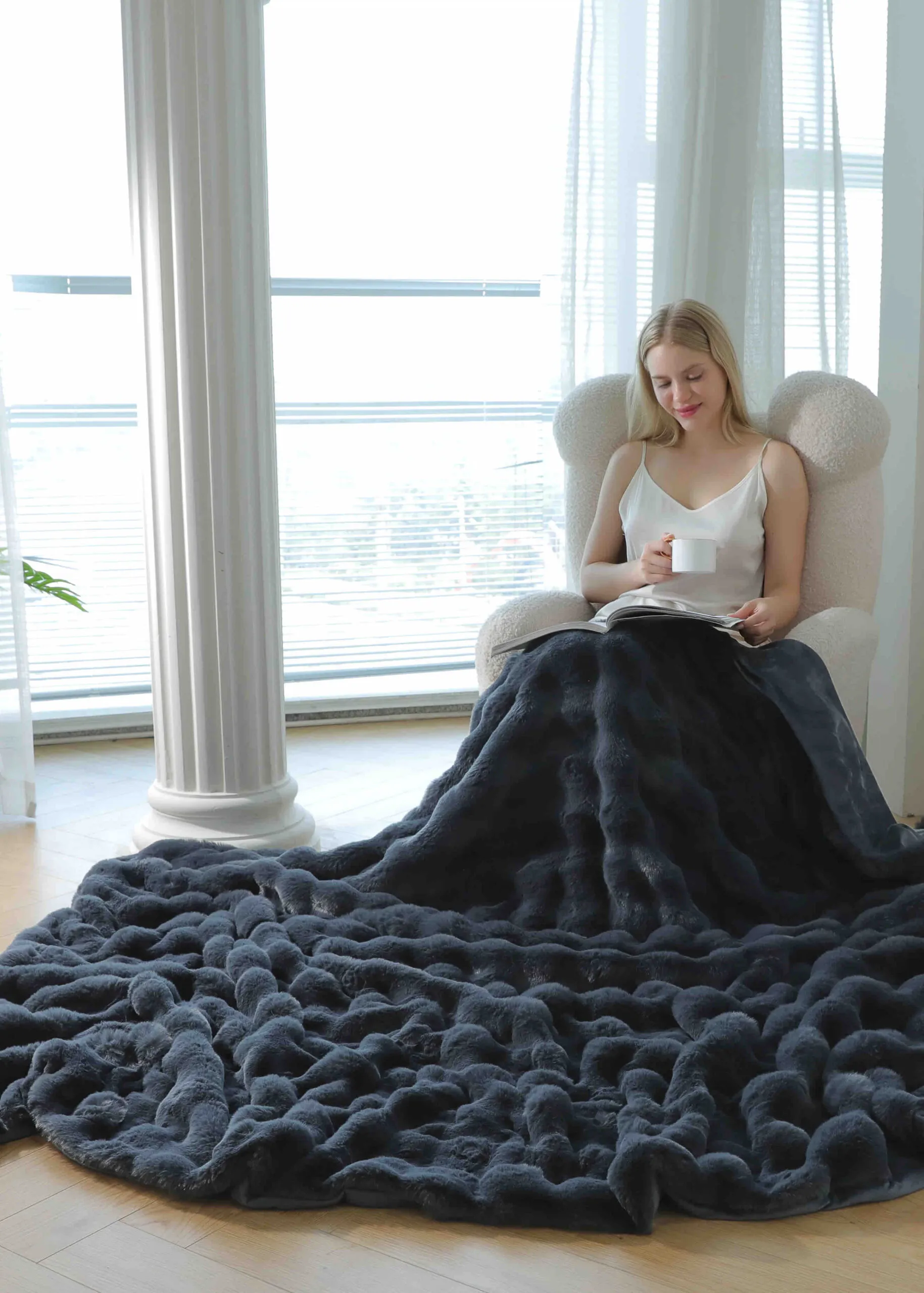 Patura Luxury 200×230 cm Blanita Artificiala – creată pentru a aduce un plus de eleganță dormitorului tău. Cu dimensiunile sale generoase de 200 x 230 cm, această pătură este fabricată din blăniță artificială moale și pufoasă, imitând perfect textura delicată a blănii naturale de iepure.