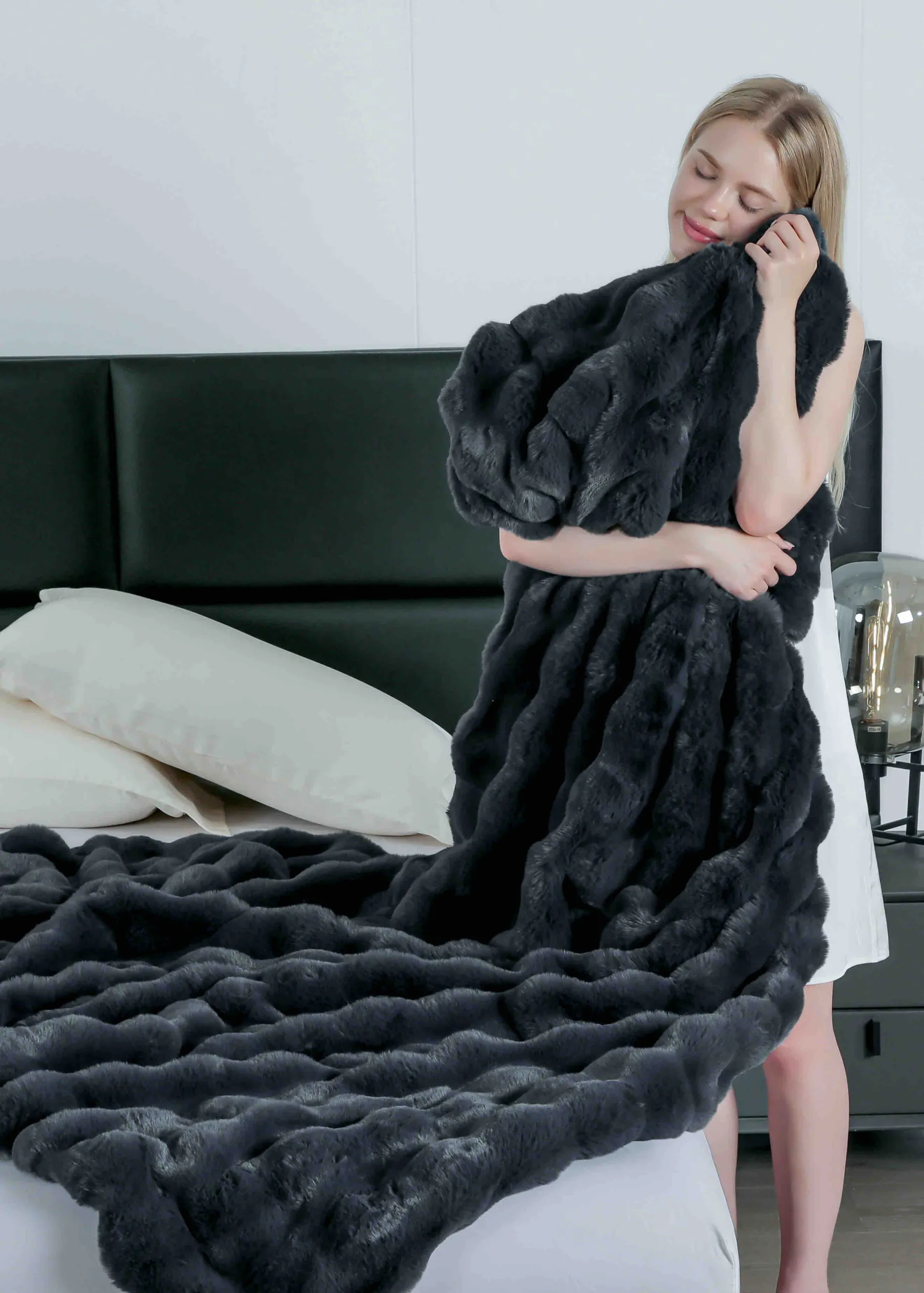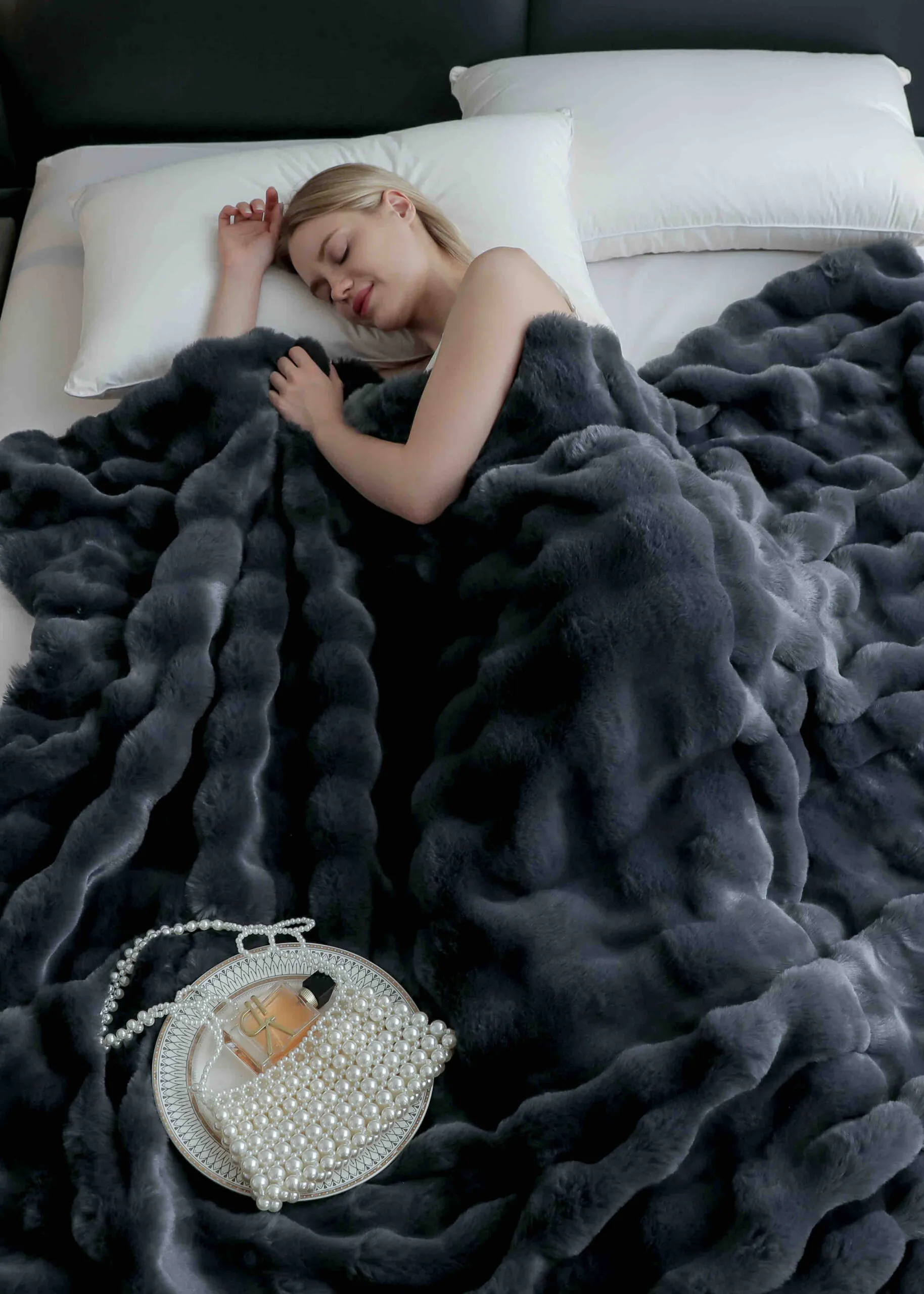 Patura Luxury 200×230 cm Blanita Artificiala si Fermoar Pilota Antracit