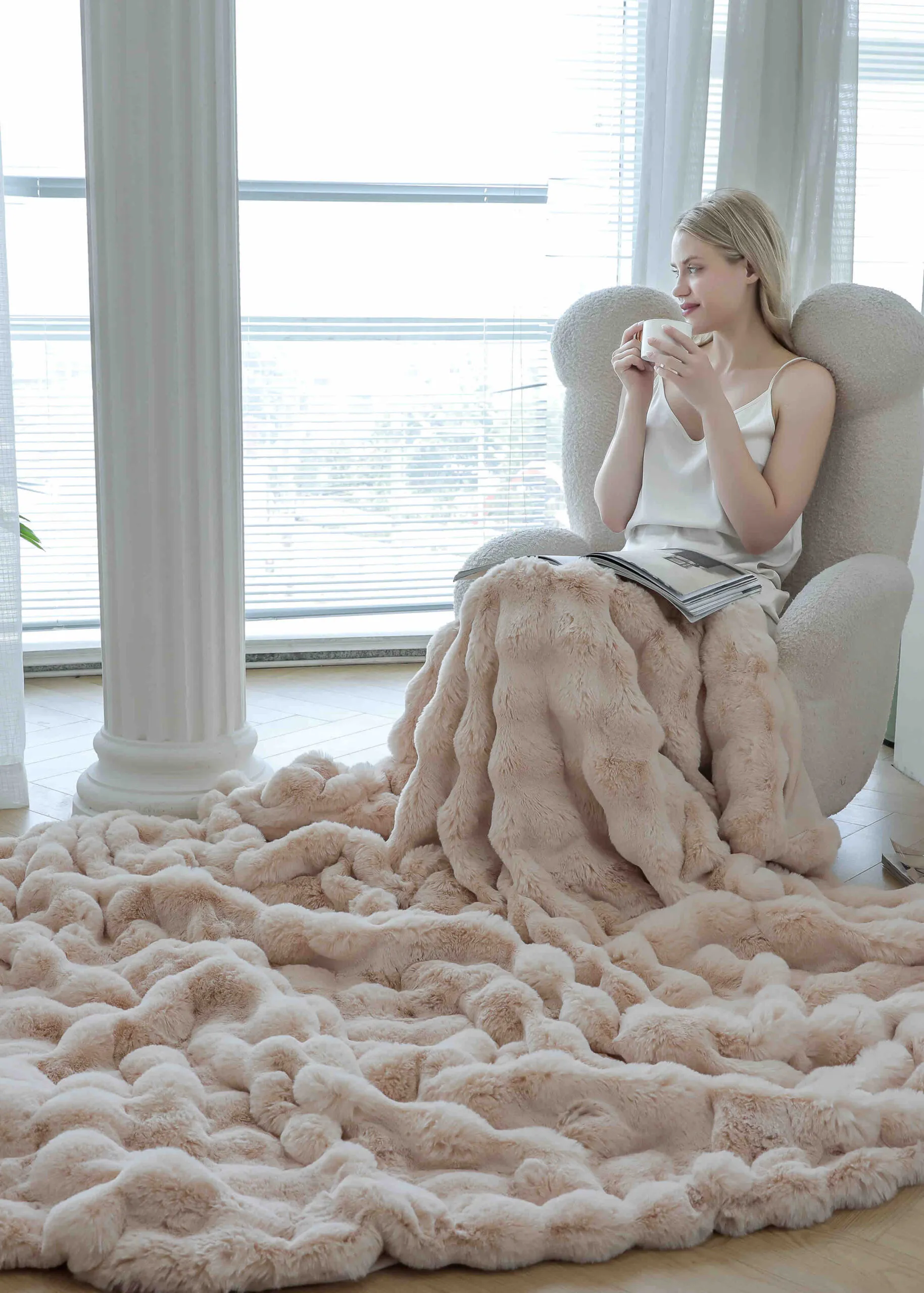 Patura Luxury 200×230 cm Blanita Artificiala – creată pentru a aduce un plus de eleganță dormitorului tău. Cu dimensiunile sale generoase de 200 x 230 cm, această pătură este fabricată din blăniță artificială moale și pufoasă, imitând perfect textura delicată a blănii naturale de iepure.