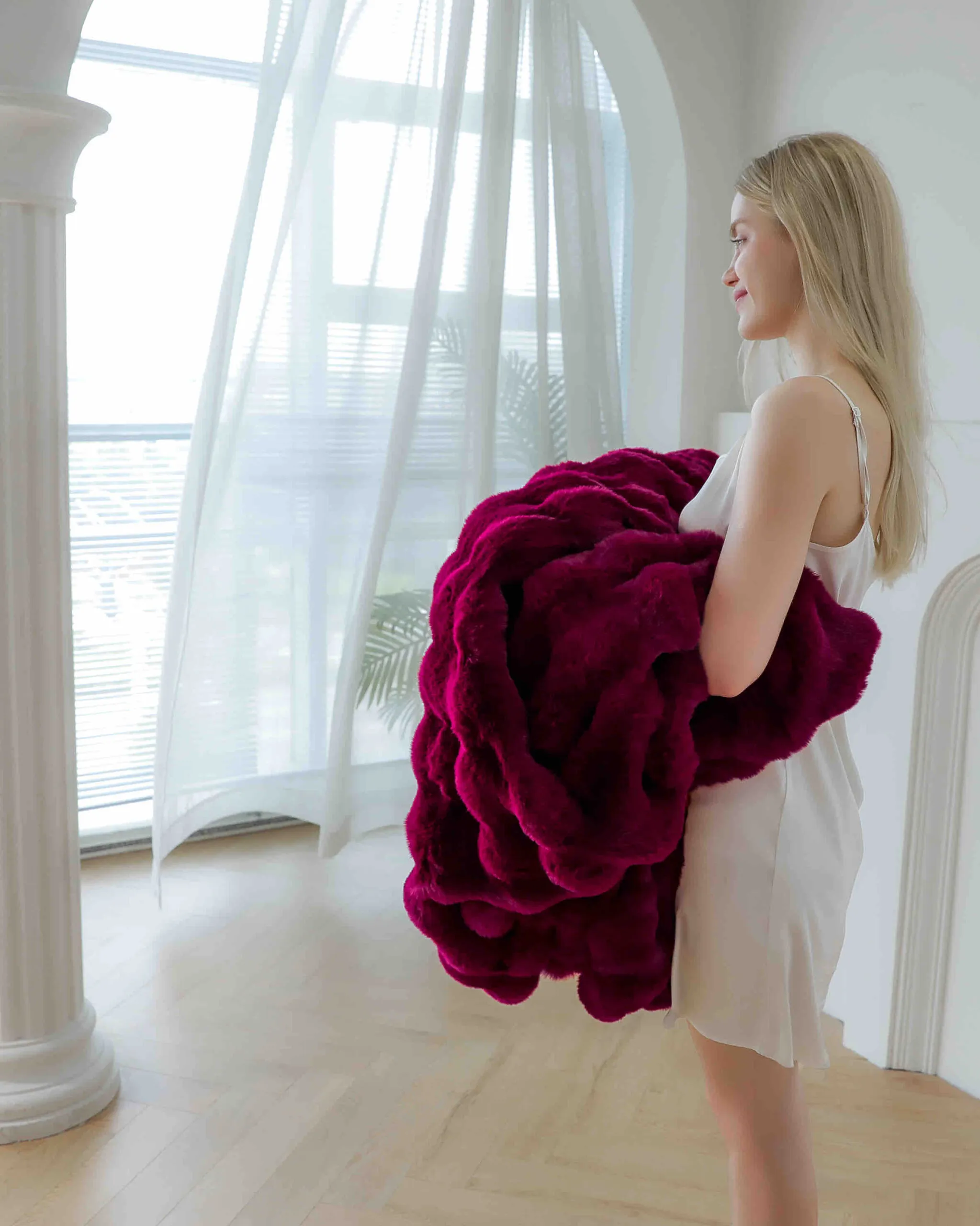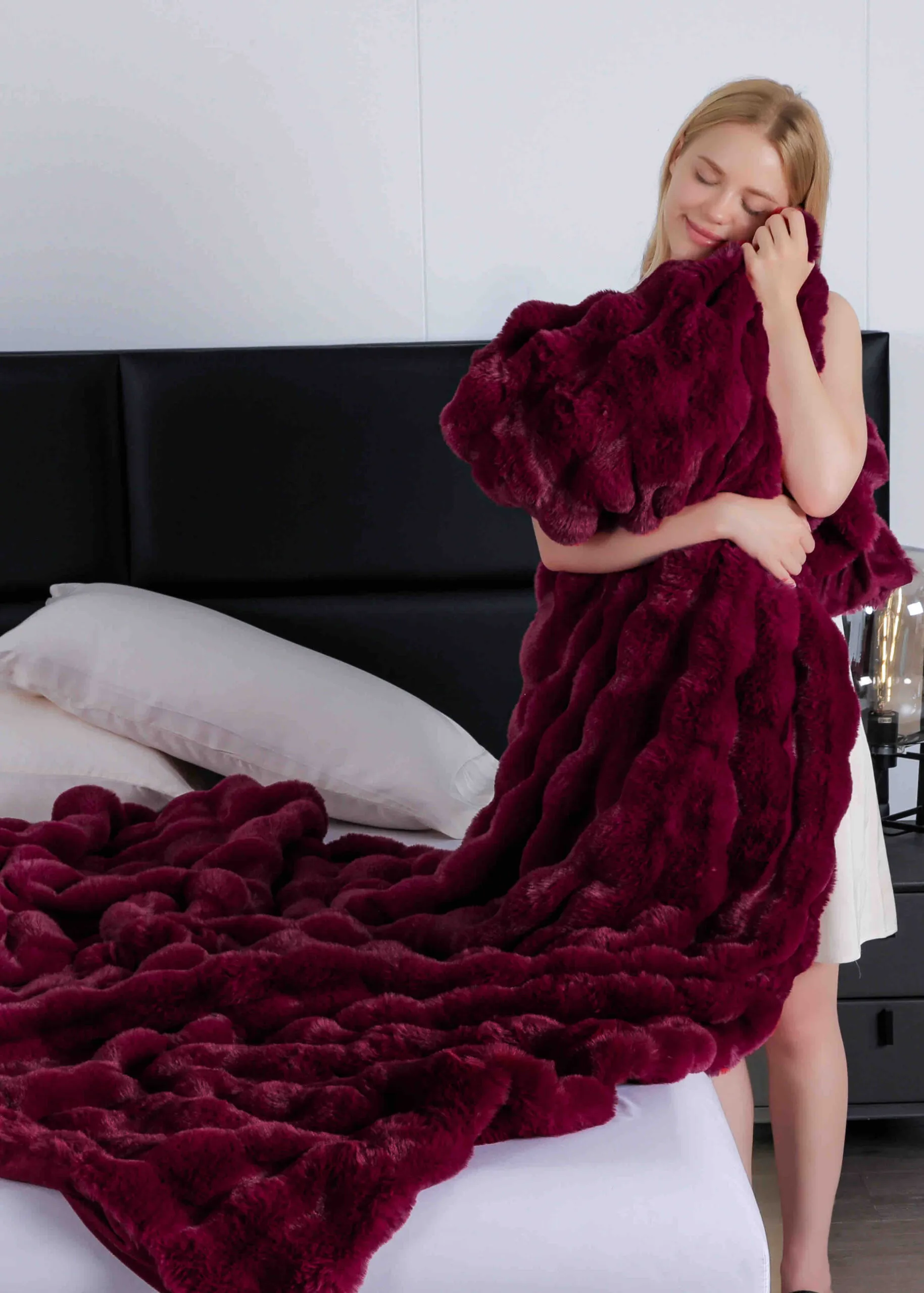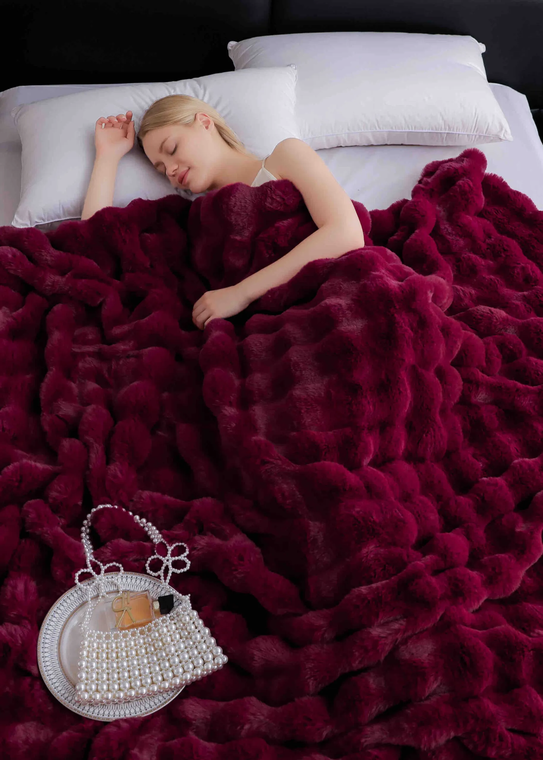 Patura Luxury 200×230 cm Blanita Artificiala si Fermoar Pilota Burgundy