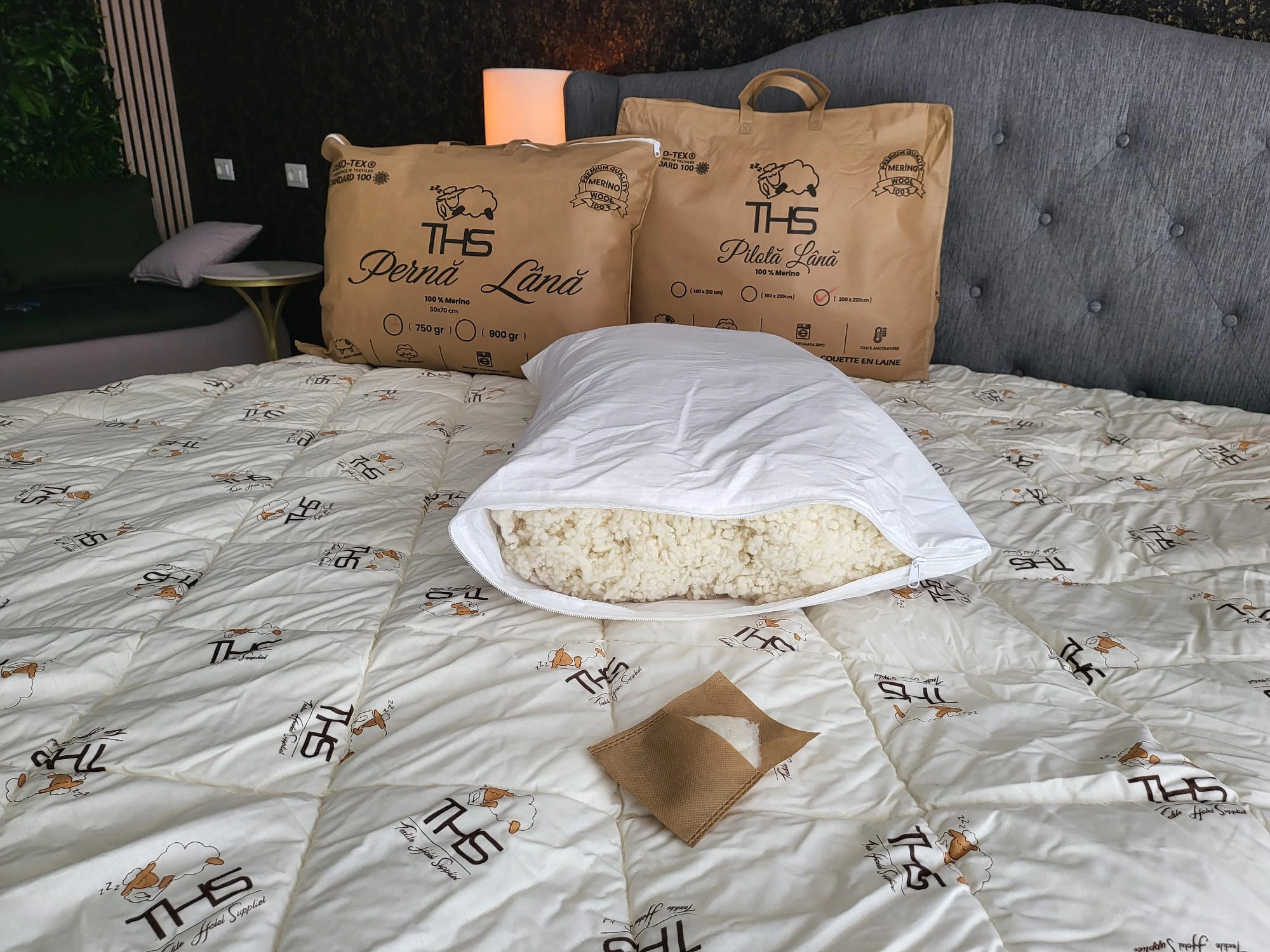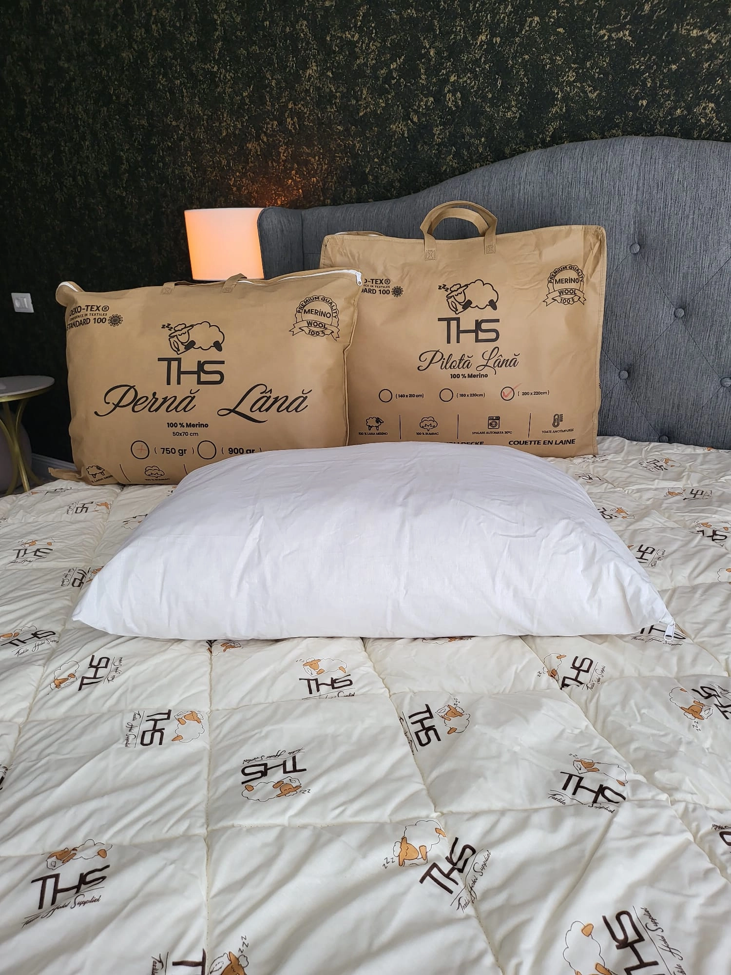Caracteristici Perna Lana Merino Premium | 900 g. | 50×70 cm | Alb