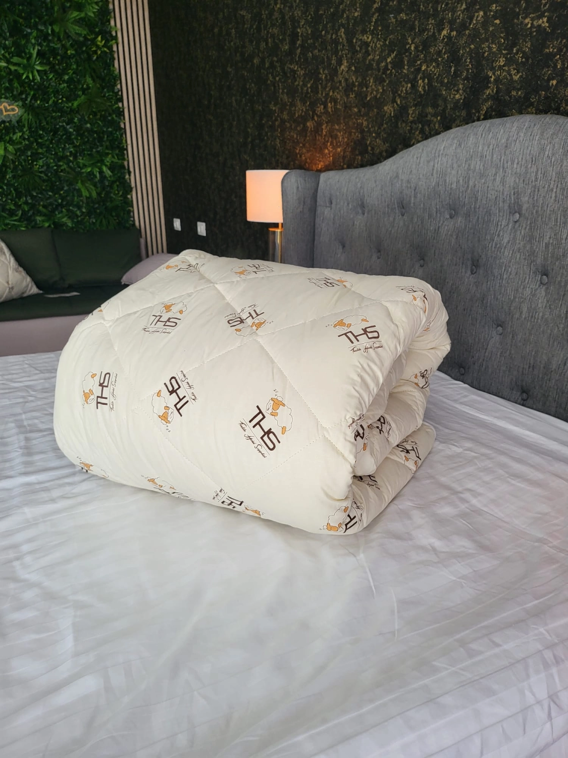- Construcție: țesătură de bumbac densă, matlasare + efect anti-migrare