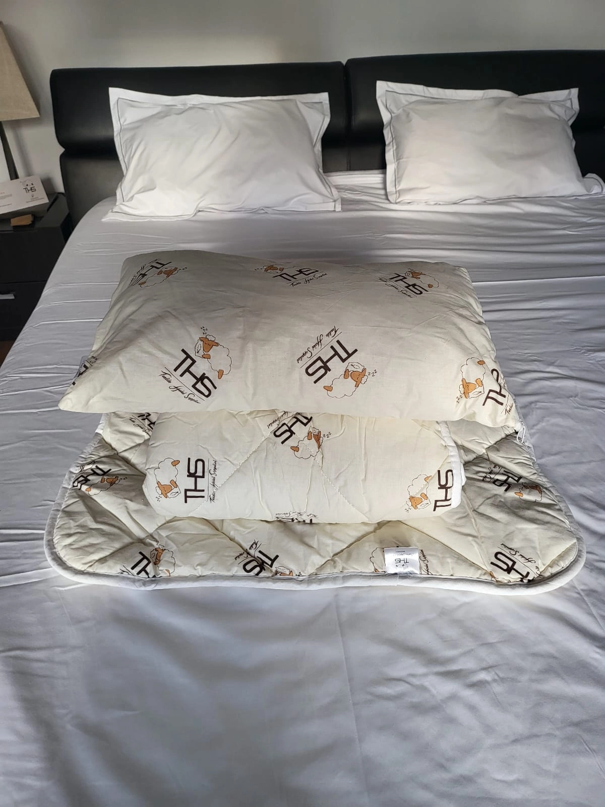 - Înveliș: 100% bumbac, crem cu imprimeu „oiță”, OEKO-TEX® Standard 100