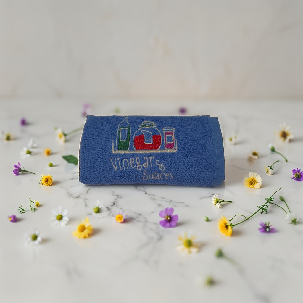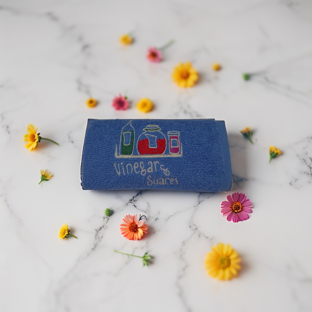 Prosop bucătărie brodat – Royal Blue – 100% bumbac, absorbant și elegant