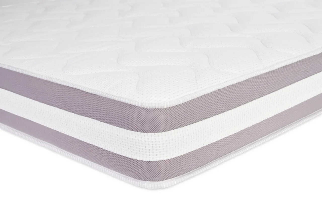 Husa este realizata din tesatura cu ioni de argint, moale la atingere, este matlasata pe partea superioara cu un strat generos de vatelina cu fibre naturale de bumbac certificata OEKO-TEX care imbunatateste confortul si aerisirea in timpul somnului.
