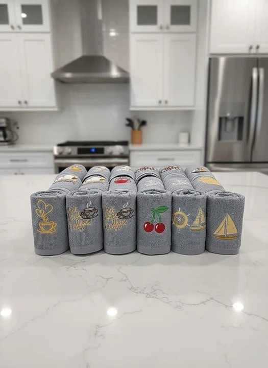Set 12 Prosoape Gri– Bumbac 100%, 30×50 cm, Brodate și Absorbante