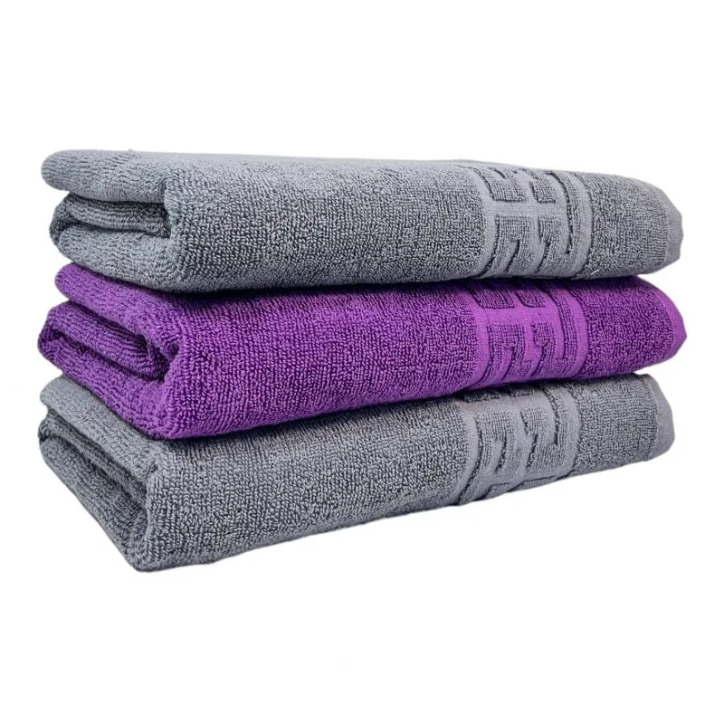 Set 3 Prosoape 70×130 cm Bumbac 500 gr/mp Greek Border Gri/Mov ofera o experienta de neuitat, precum intr-un hotel de 5 stele, de fiecare data cand este utilizat. Modelul prin care sunt decorate prosoapele la baza, le confera un aer sofisticat, iar calitatea materialului asigura rezistente in timp. Chiar si dupa multiple spalari, culorile nu se vor estompa, iar materialul nu se va subtia sau scamosa.